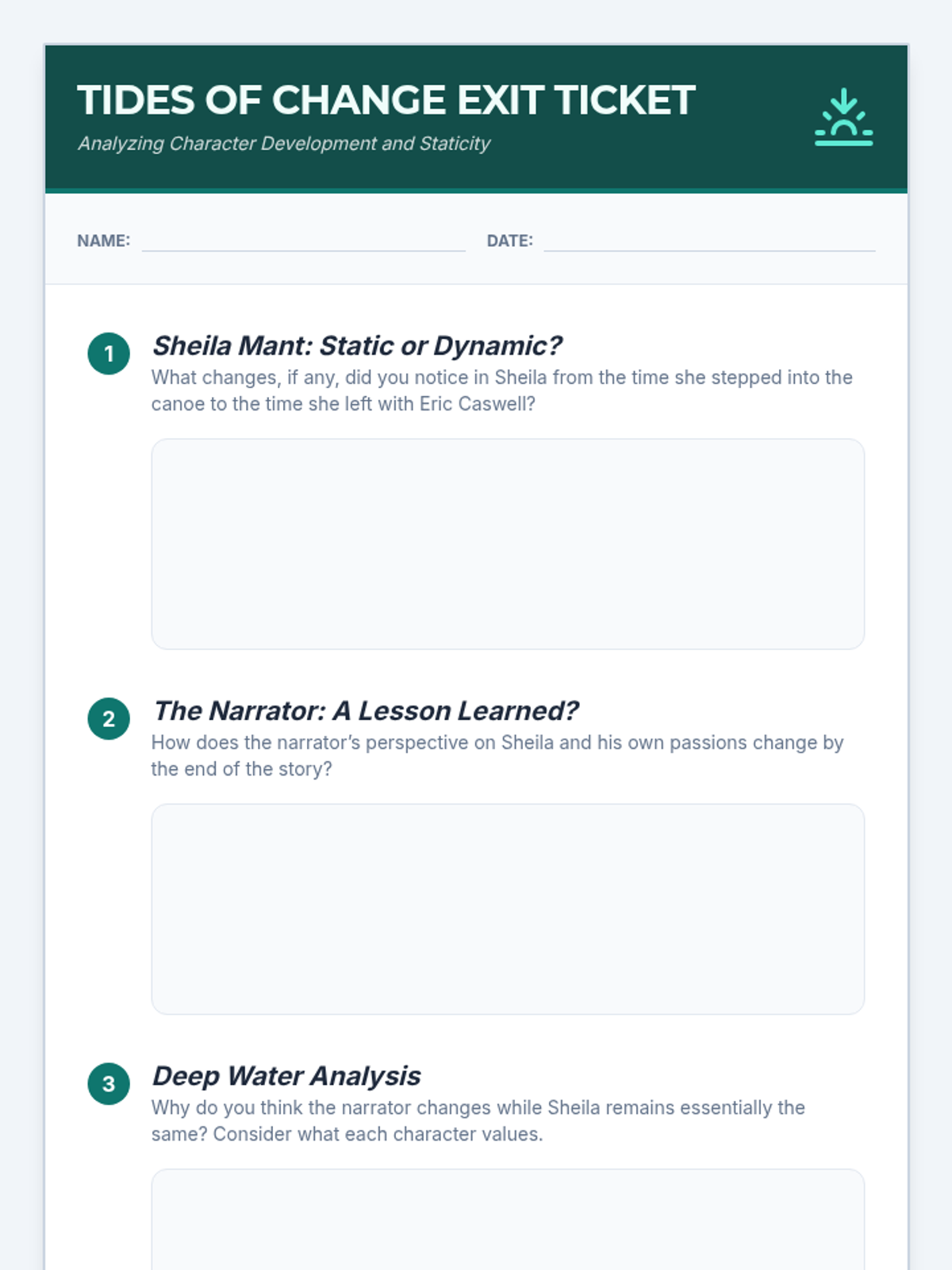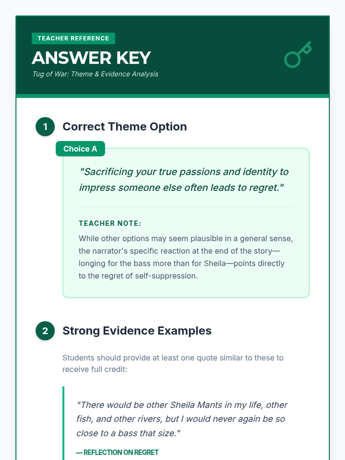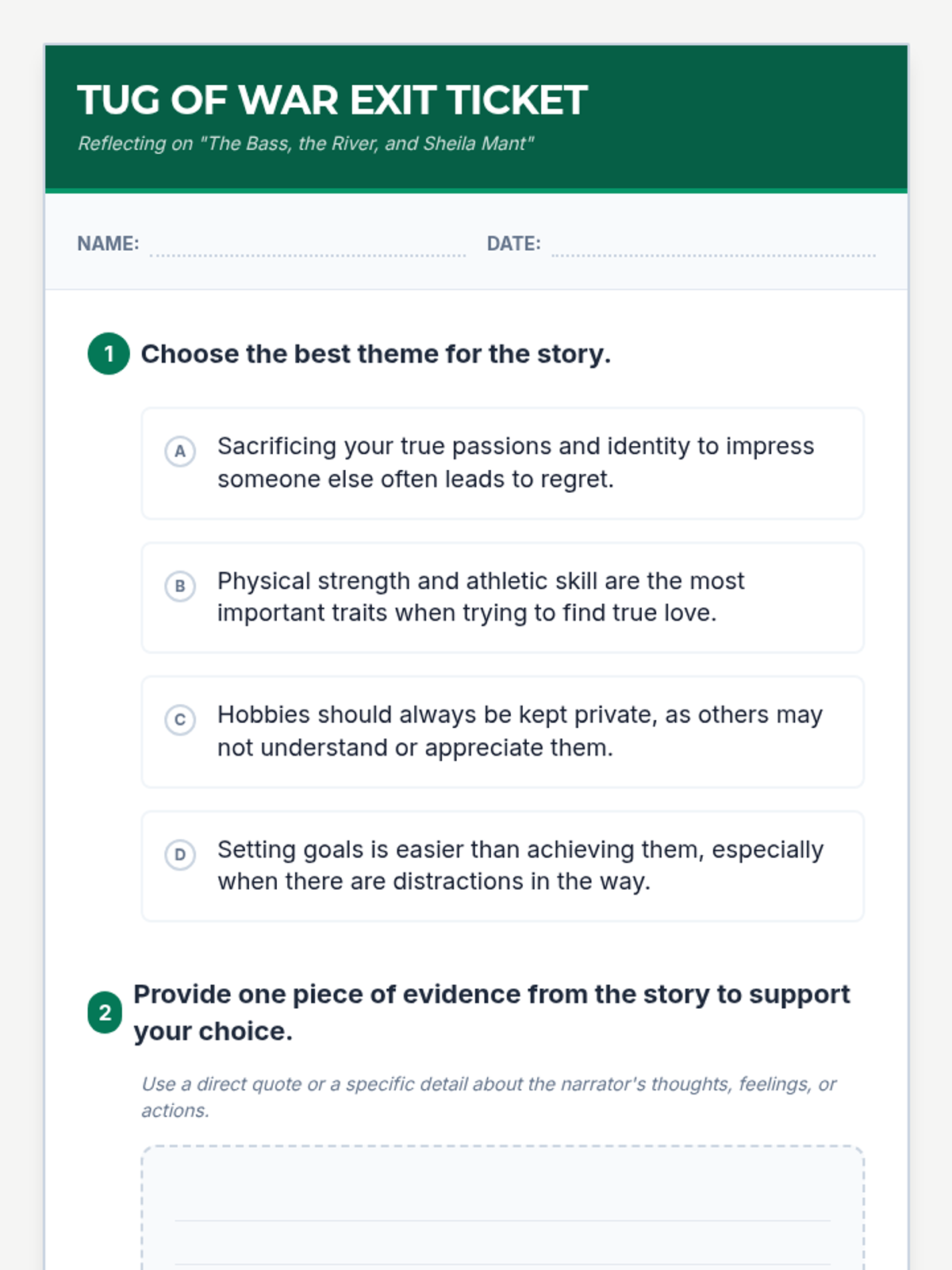 A focused lesson on analyzing theme and internal conflict in 'The Bass, the River, and Sheila Mant', culminating in a thematic evidence-based exit ticket.
