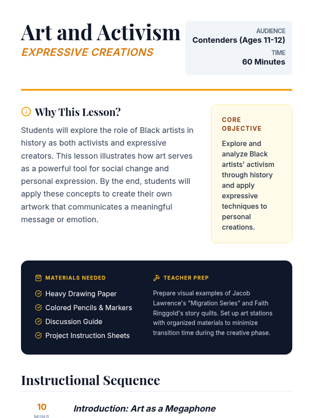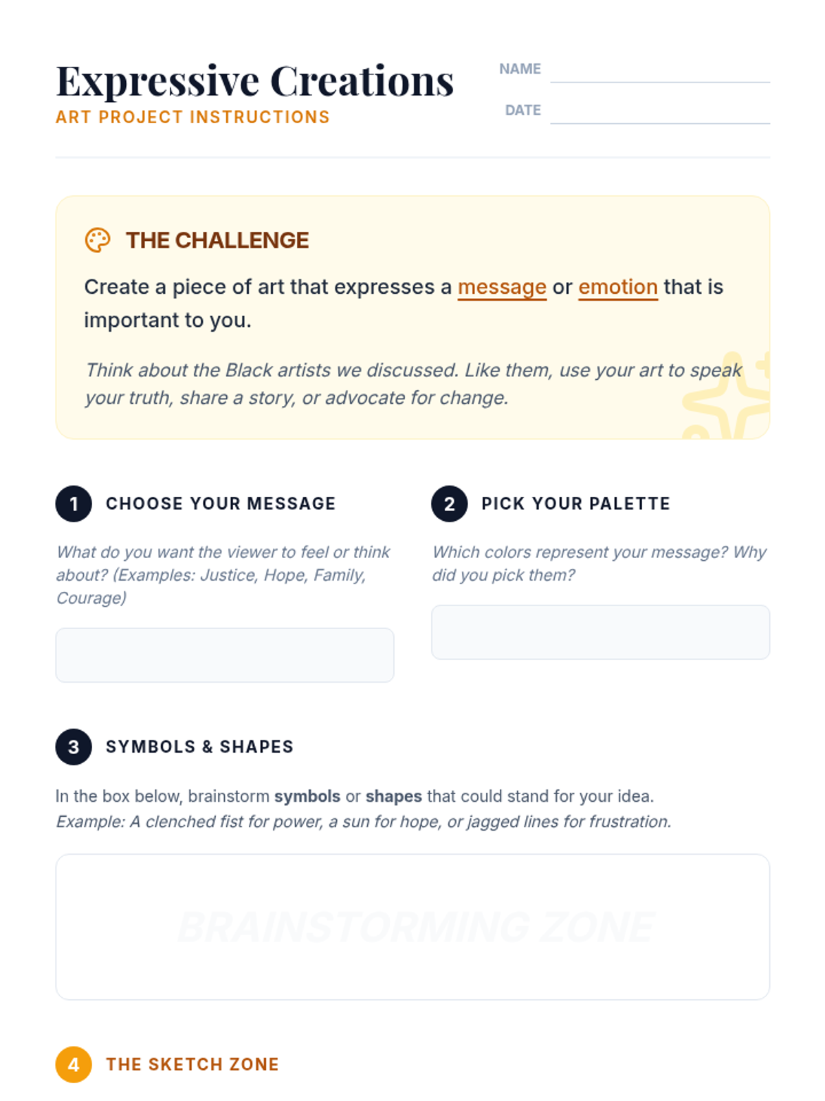 Explore the intersection of art and social change through the work of Black artists. Students will analyze how visual storytelling serves as activism and create their own expressive artwork.