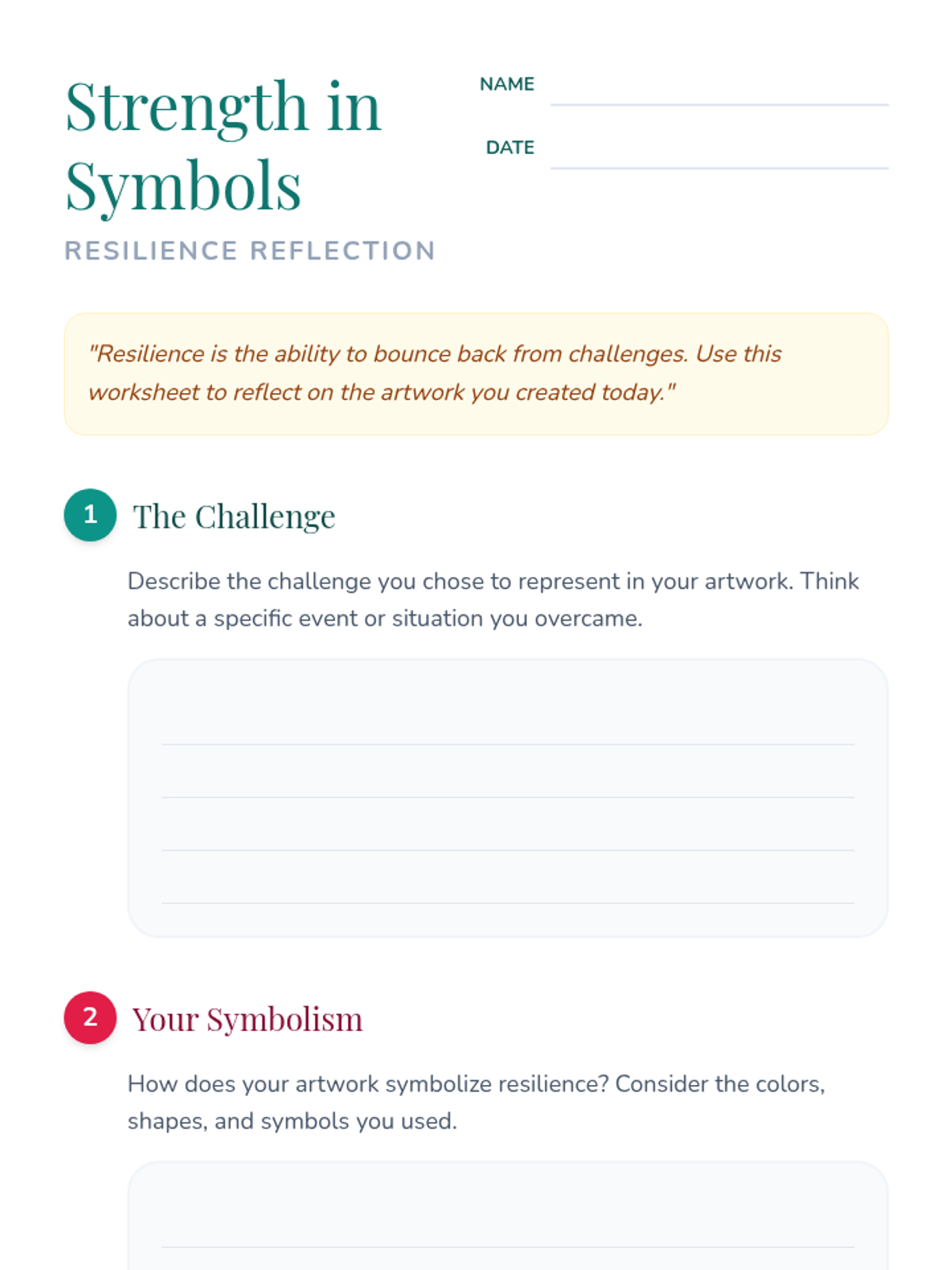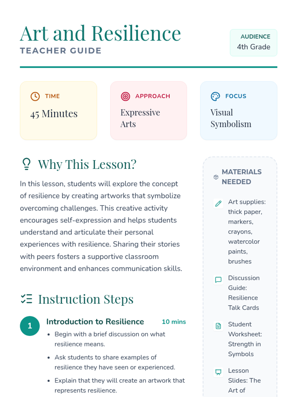 A 4th-grade lesson exploring resilience through creative art, where students symbolize personal challenges and growth.