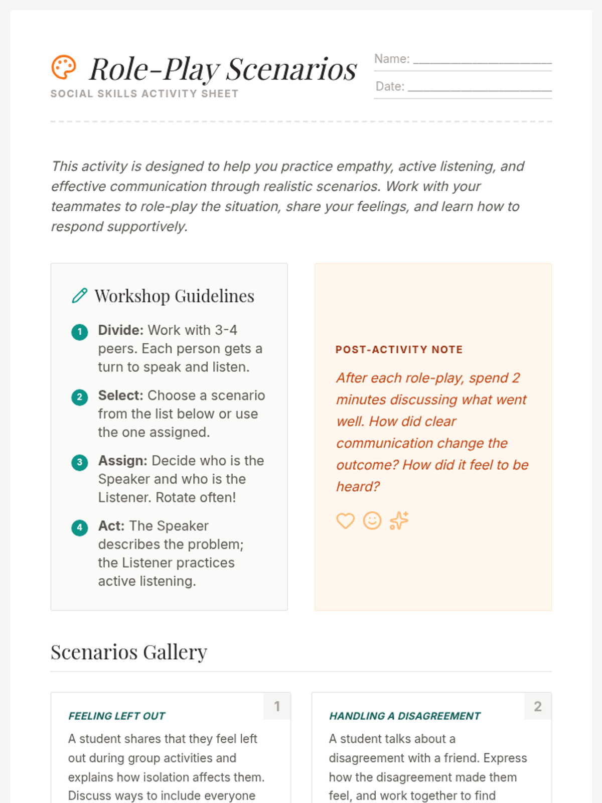 Develops assertive communication skills using I-Statements and empathetic listening techniques.