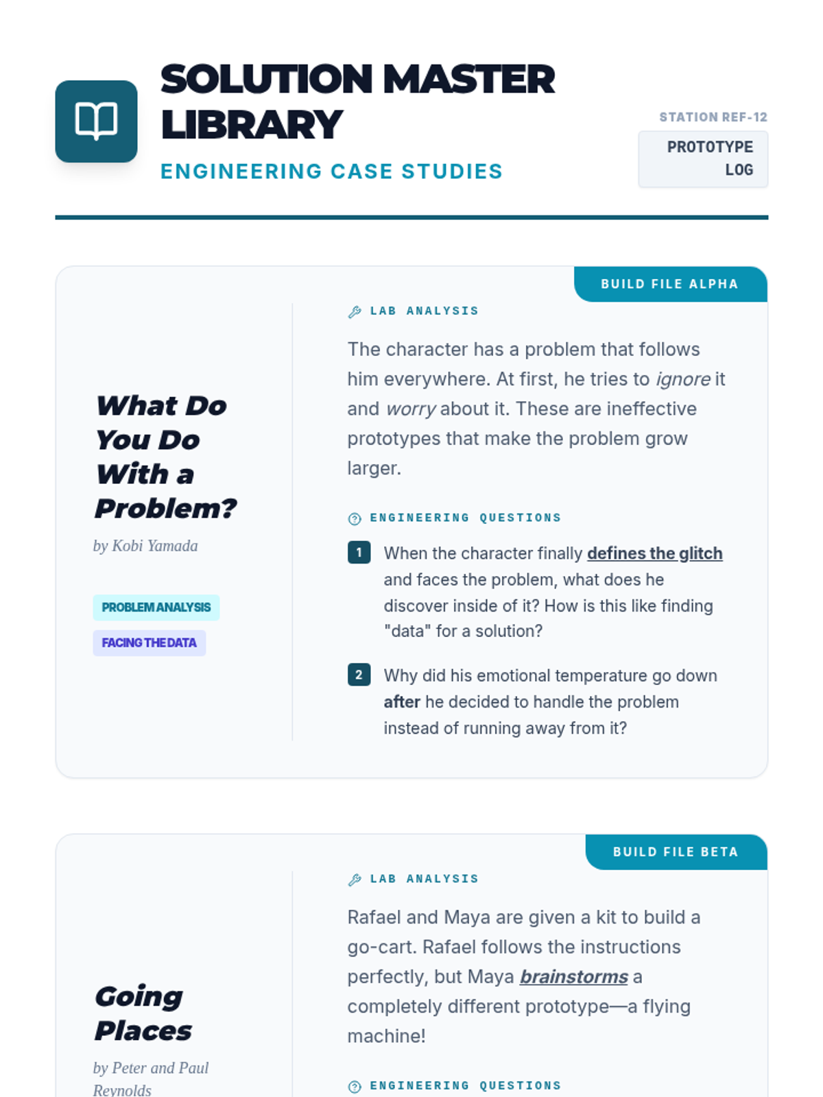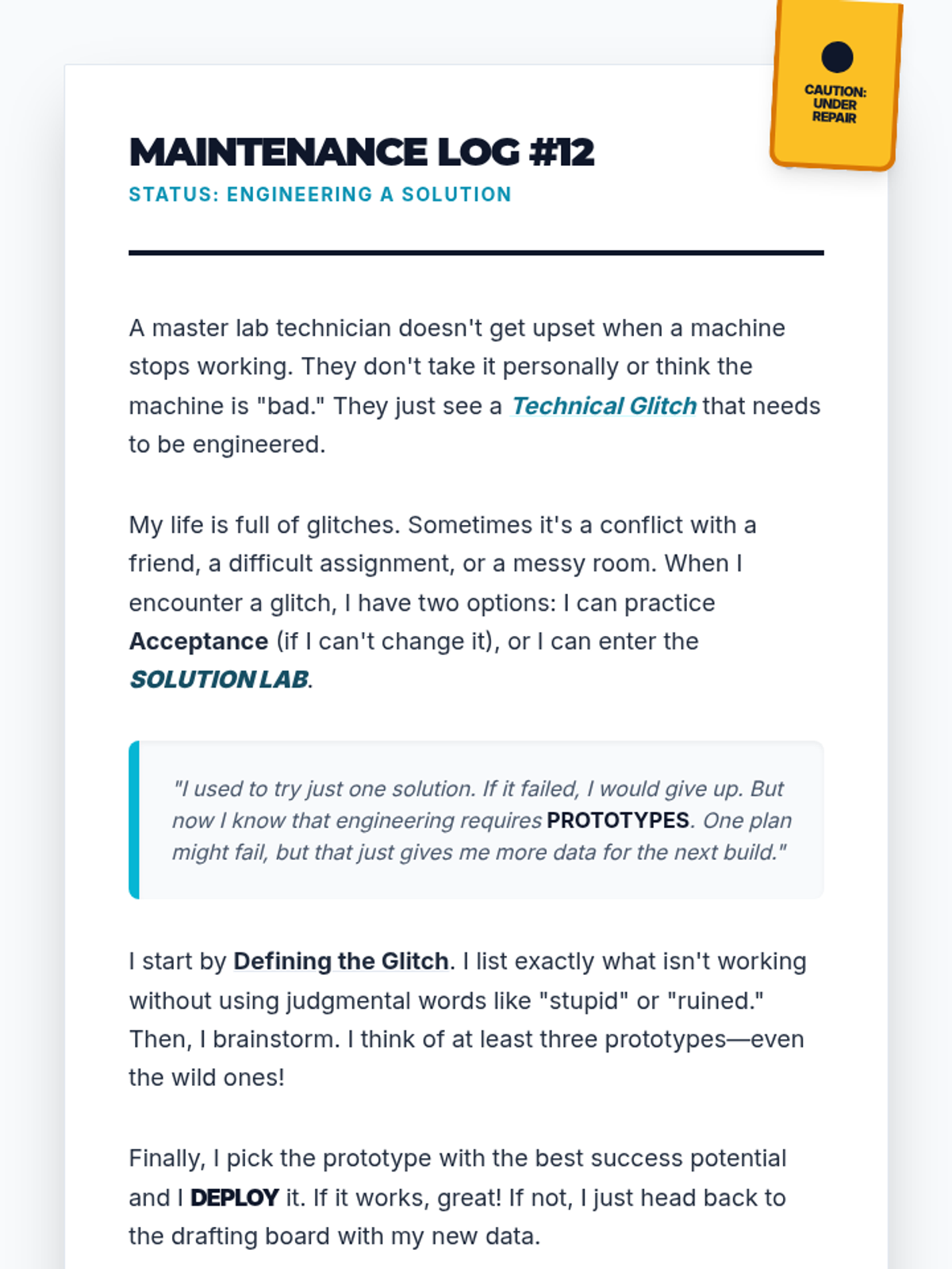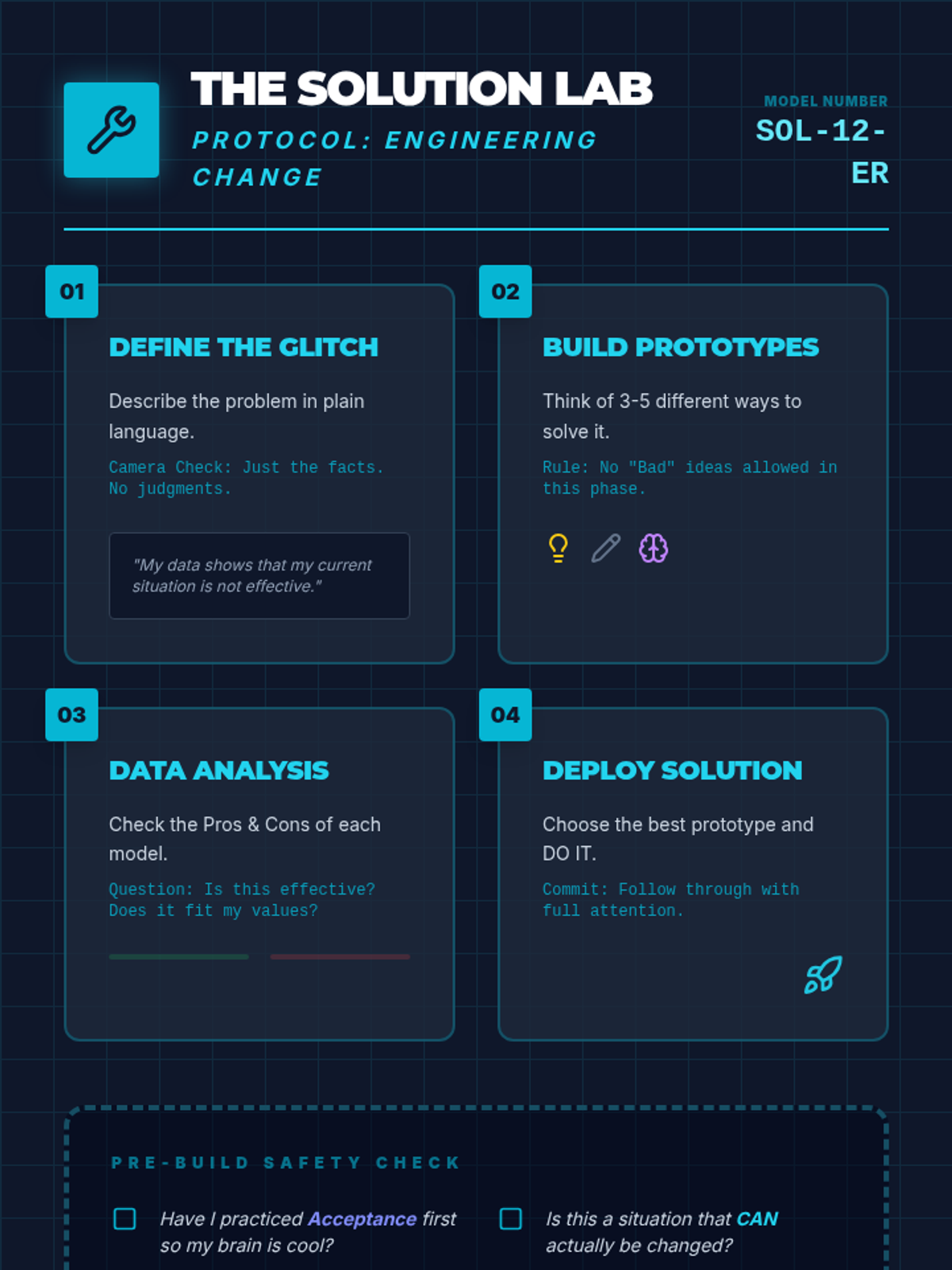 A lesson for grades 3-5 focused on Problem Solving, using the 'Solution Lab' metaphor to teach a step-by-step approach to resolving situations that can be changed.