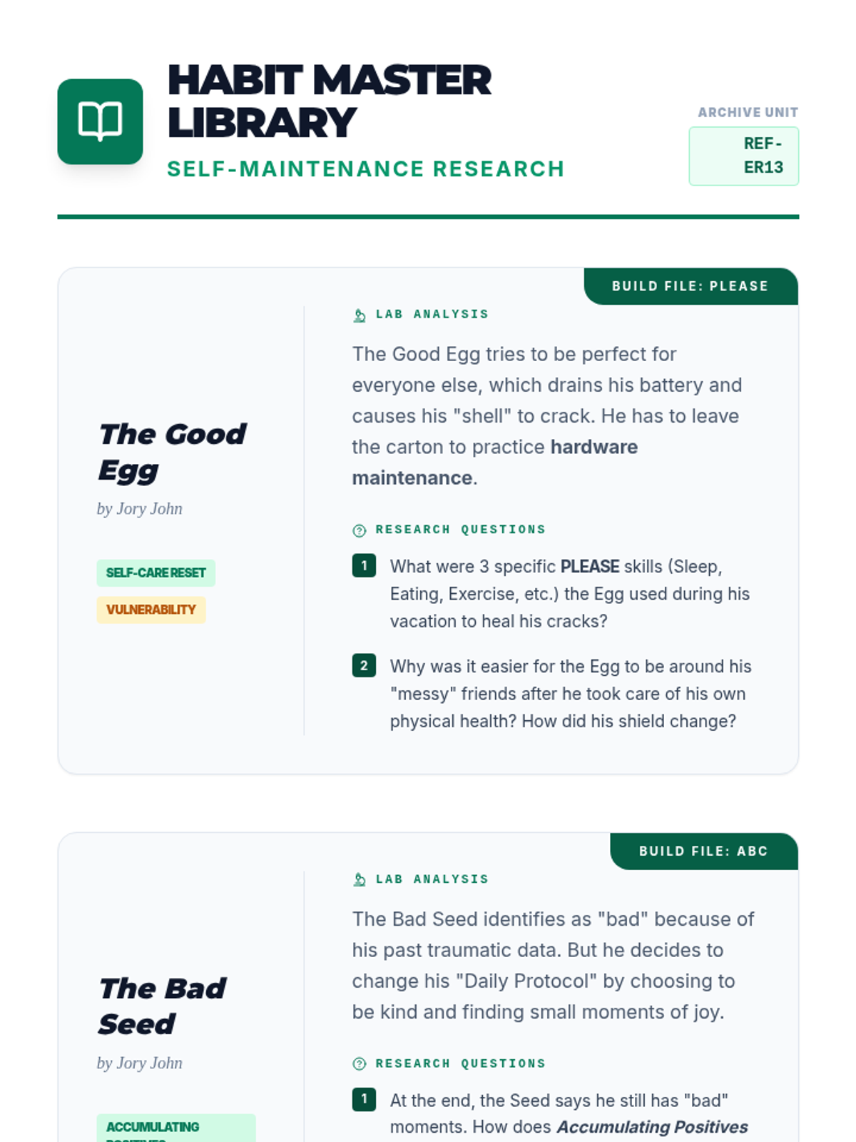 A lesson for grades 3-5 on the 'ABC' and 'PLEASE' skills, called 'Healthy Habits,' focusing on building a life that reduces emotional vulnerability through accumulation of positive events and physical health.