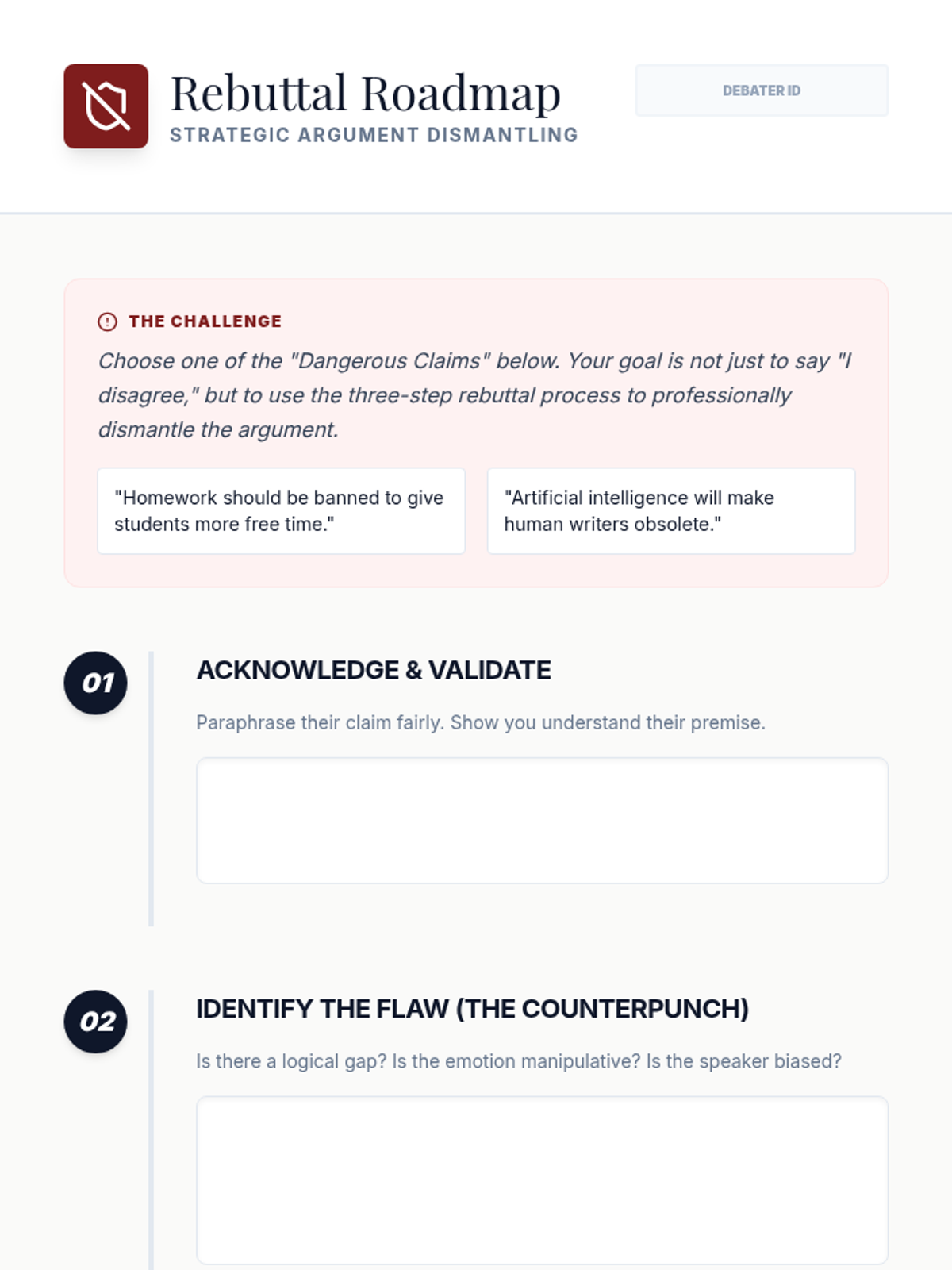 Focusing on counter-argumentation and the art of the rebuttal, students learn to anticipate and dismantle opposing views in a debate setting.