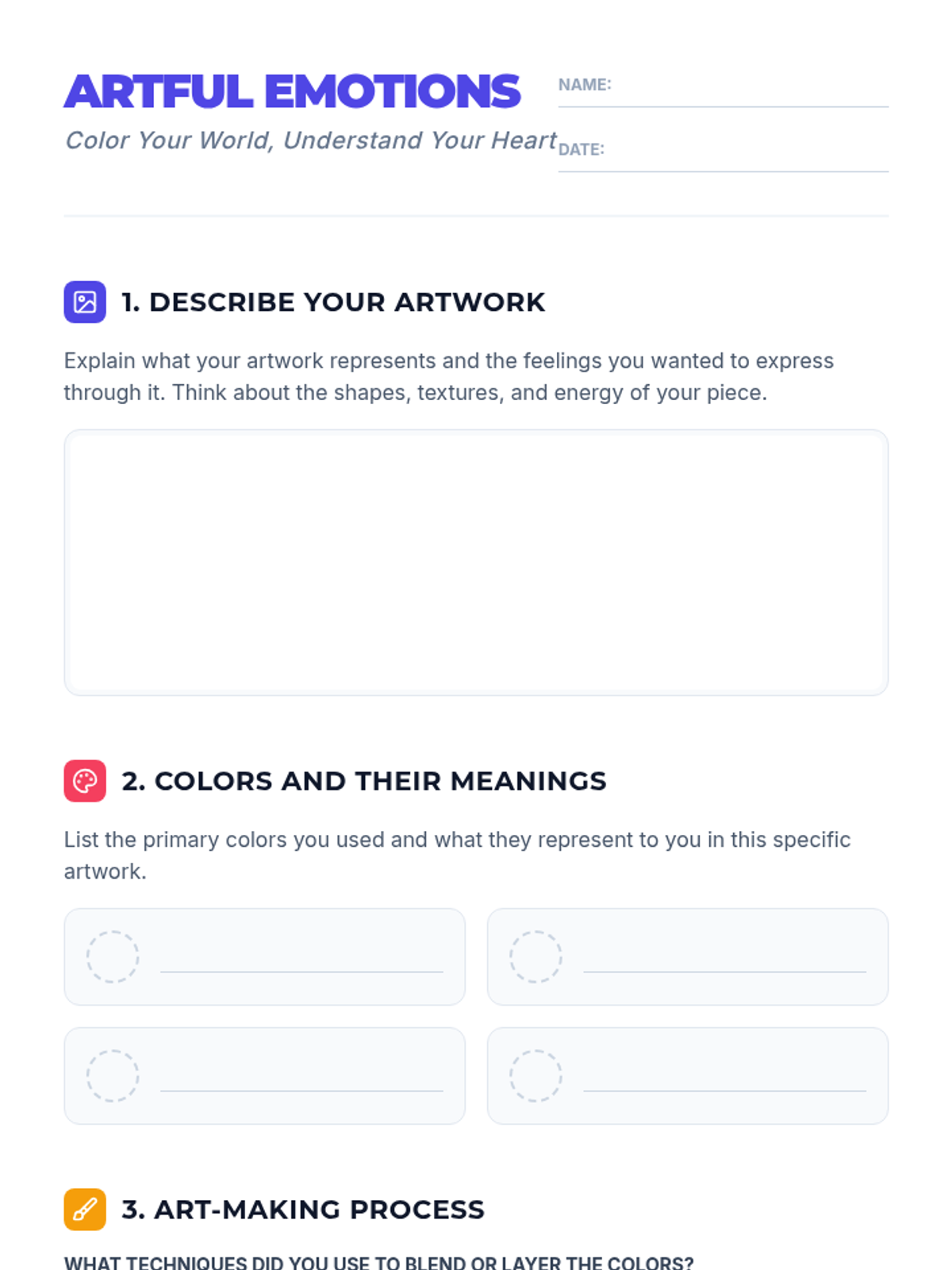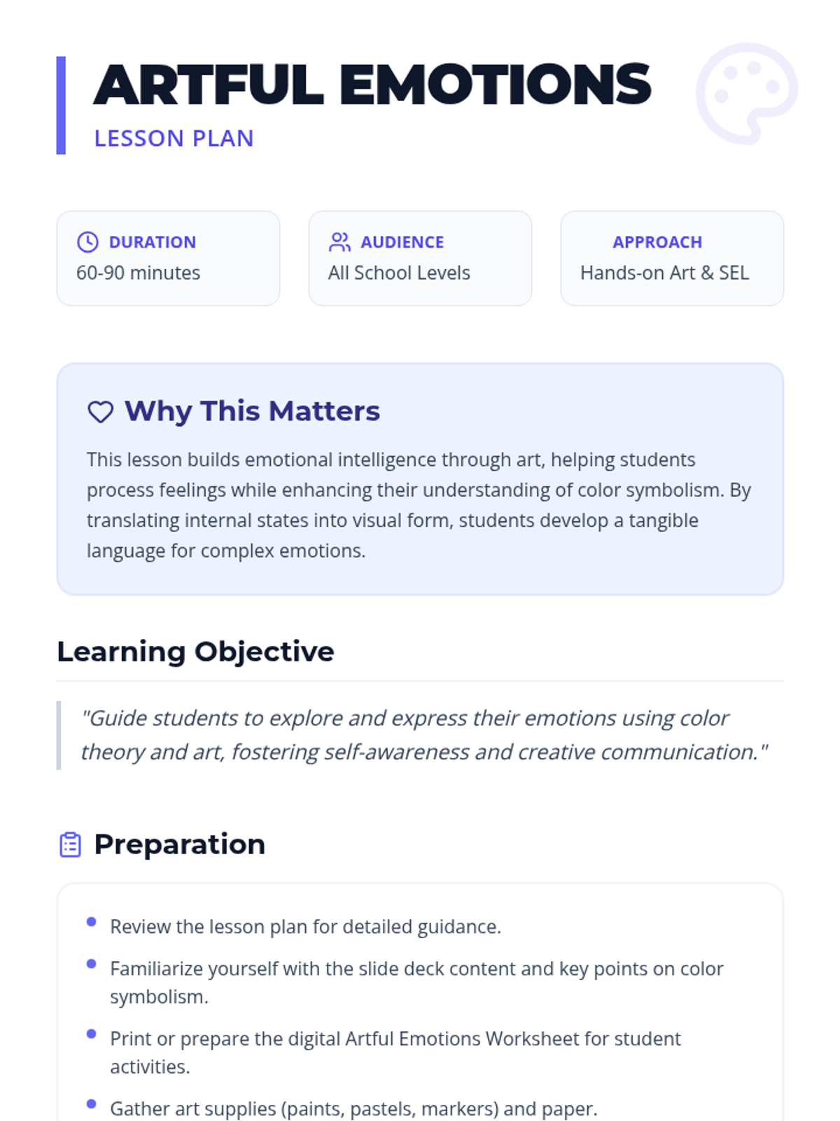 A creative art and social-emotional learning lesson where students explore how color theory can be used to identify and express complex emotions.