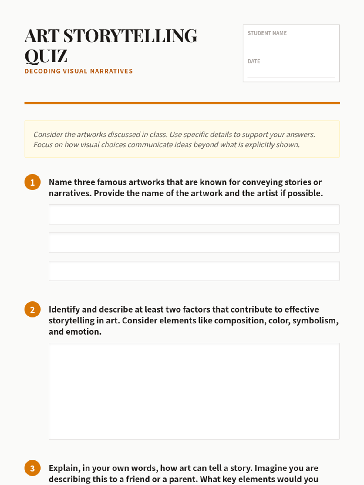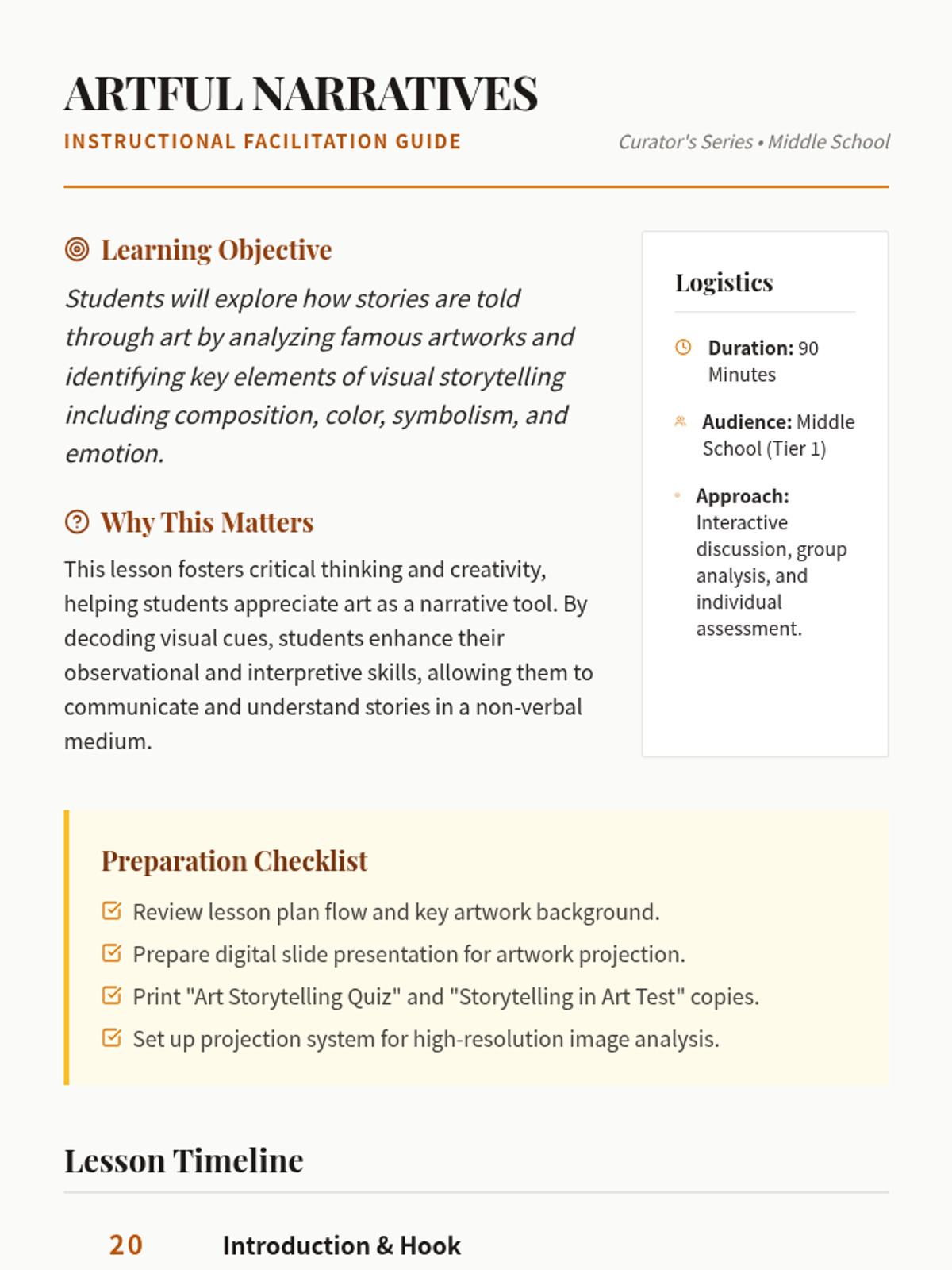 A 90-minute middle school lesson exploring how visual elements like composition, color, and symbolism are used by artists to convey complex narratives and emotions in famous artworks.