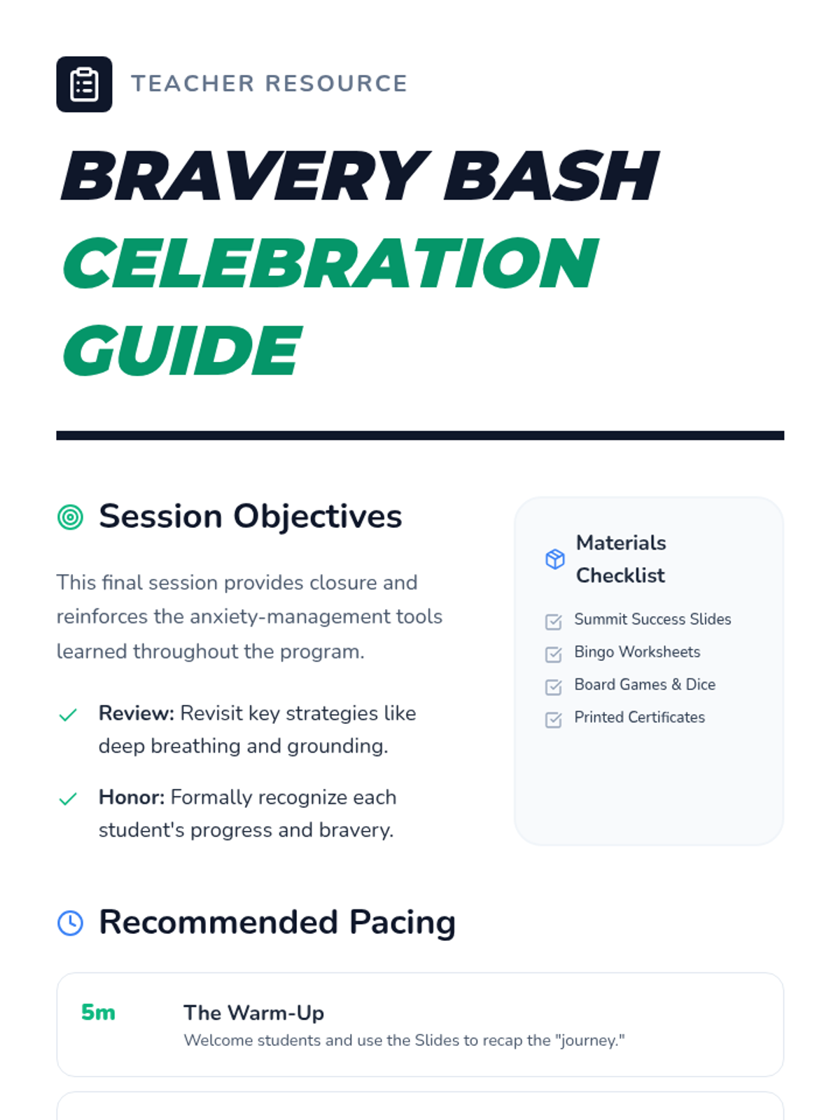 A celebratory closing lesson for a small group focused on anxiety, featuring games and reflection activities to honor students' progress and reinforce coping strategies.