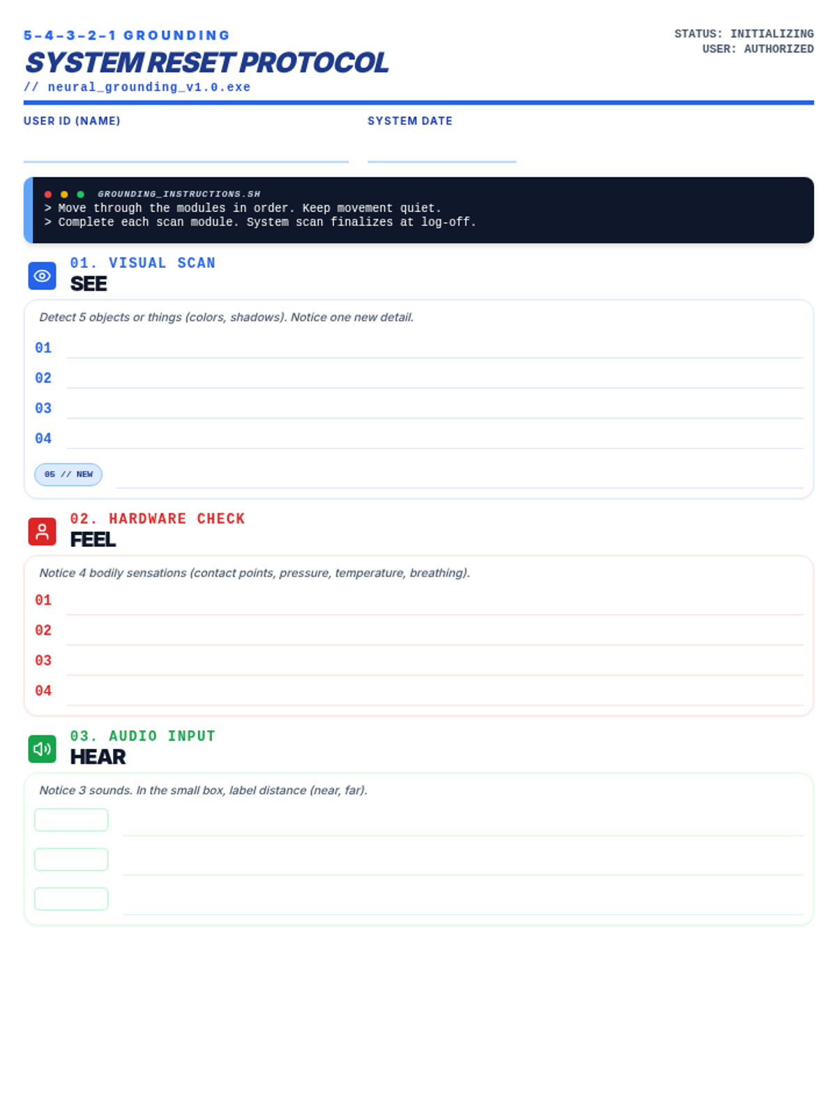 A grounding and mindfulness lesson using a coding-themed 'System Reset' protocol to help students focus and regulate their attention.