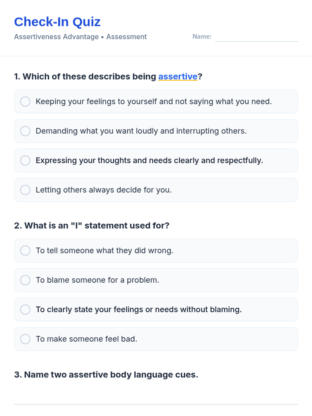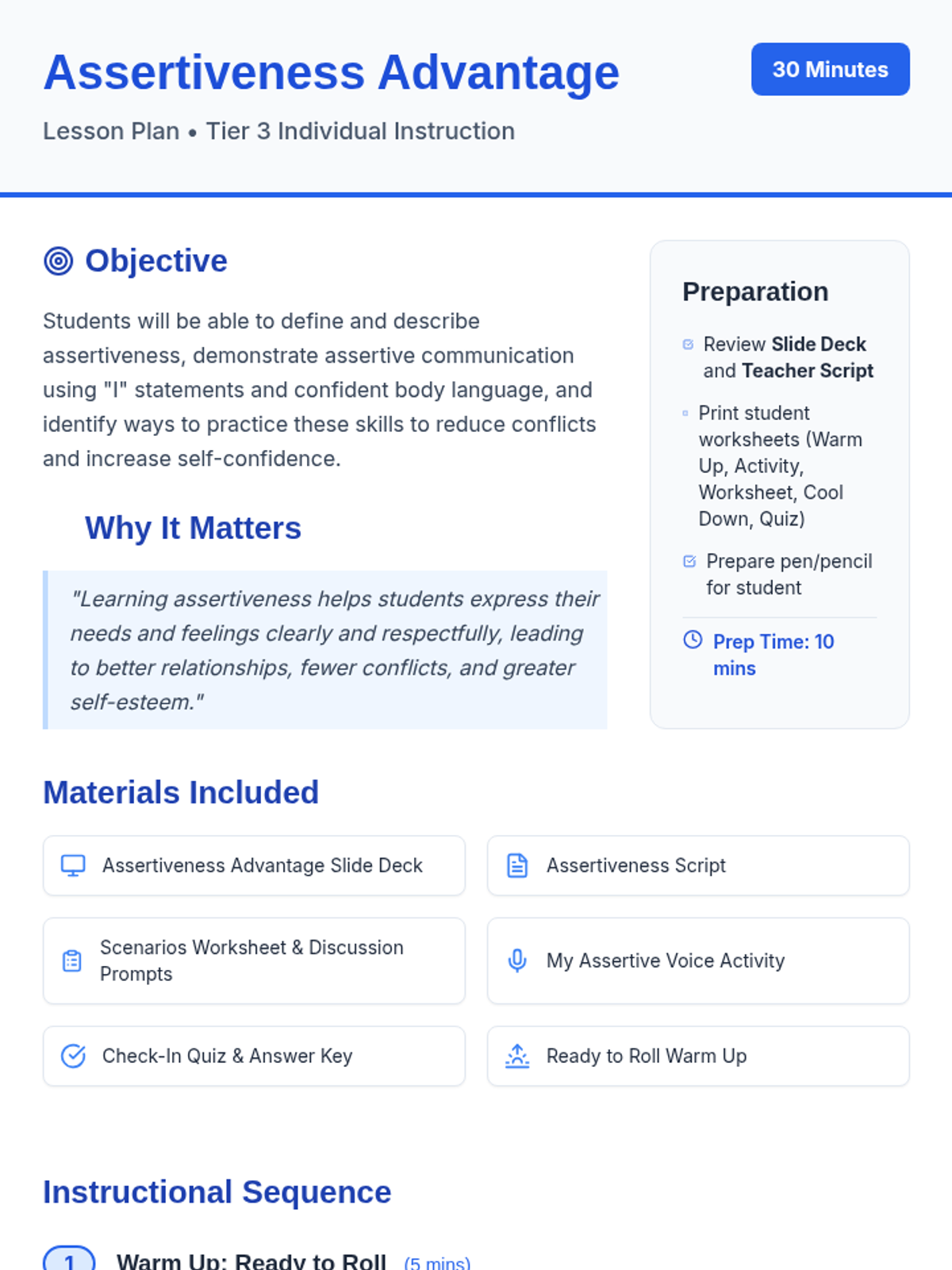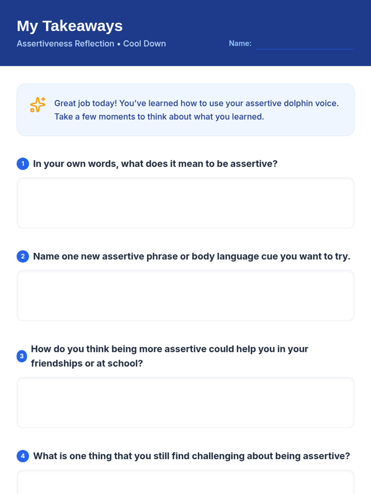 A 30-minute Tier 3 individual lesson for 4th graders to learn and practice assertive communication skills using the 'dolphin' approach to reduce conflict and build confidence.
