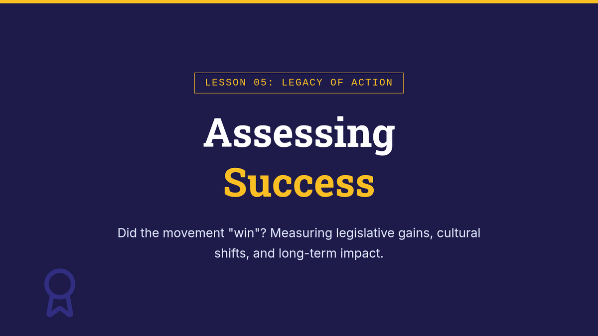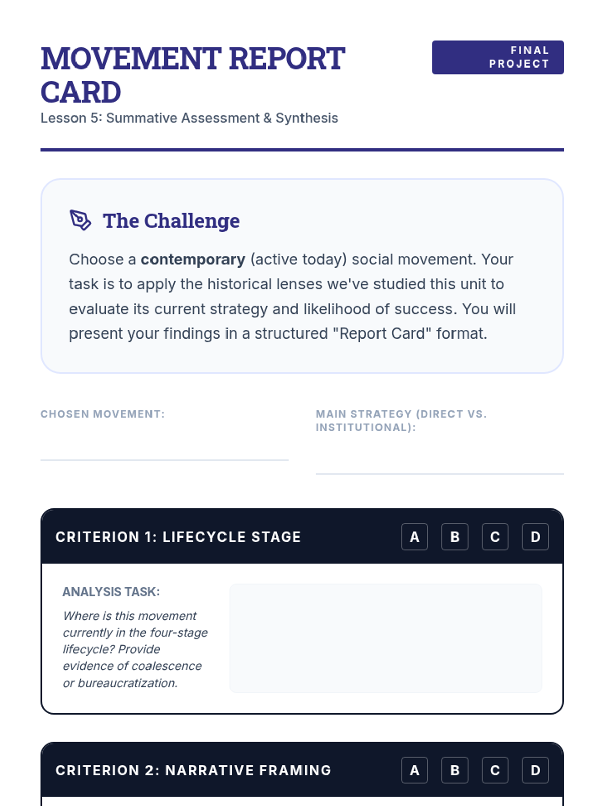 A synthesis lesson where students evaluate movement success based on policy wins, cultural shifts, and long-term legacy.