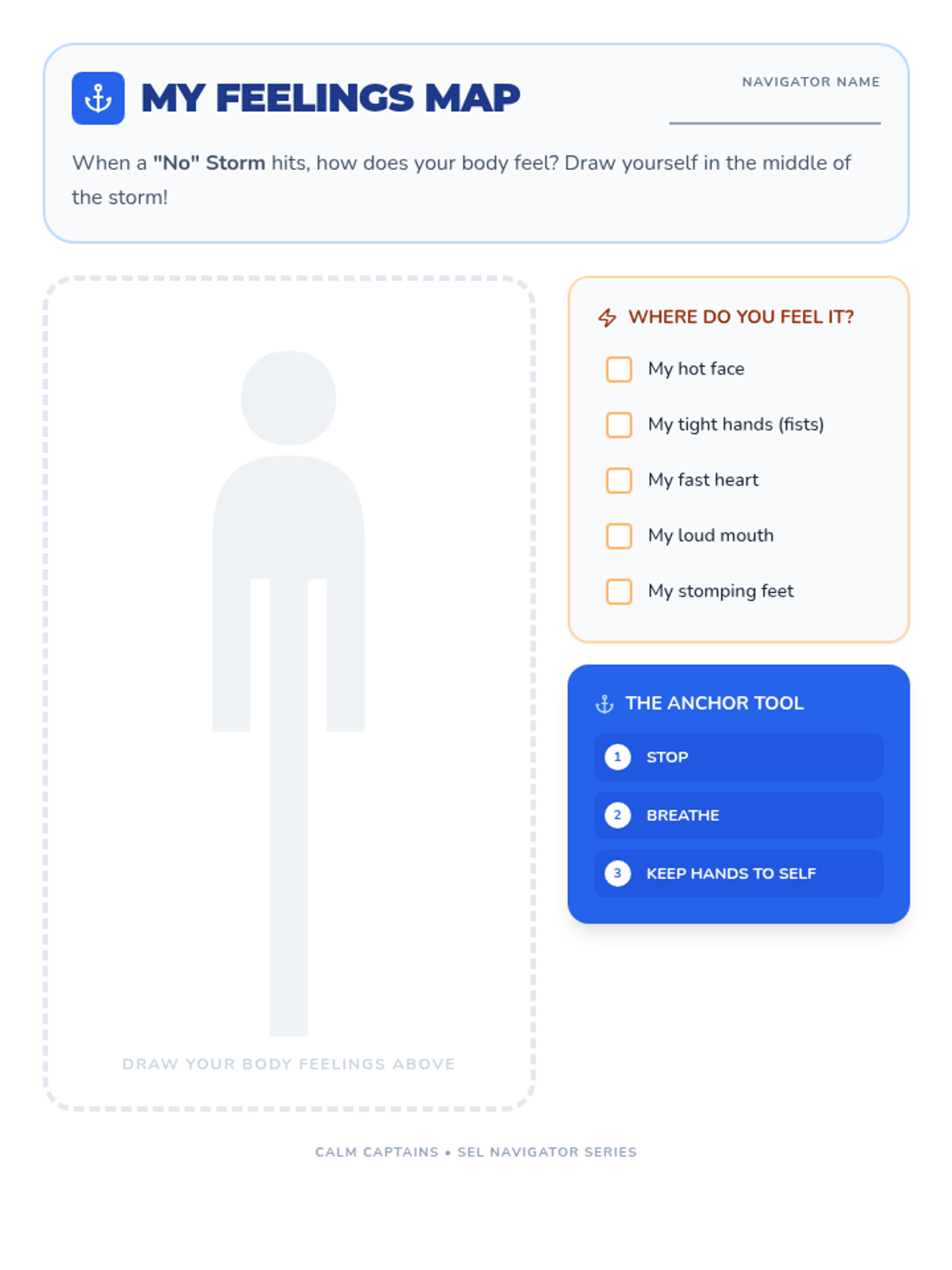 Students identify that hearing "no" is a common experience and explore the feelings that arise when they don't get what they want. They learn the 'Stop and Breathe' technique.