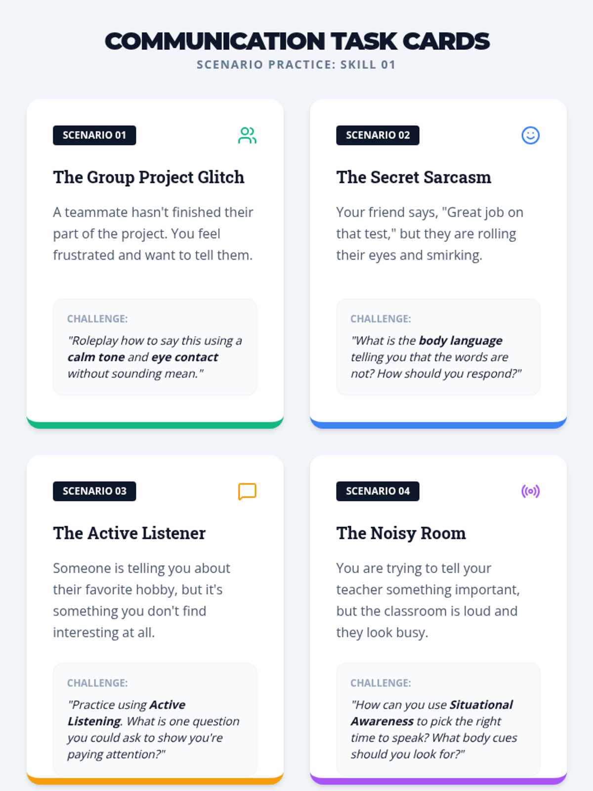 Teaches students how to read a room, understand social contexts, and adjust their behavior accordingly.