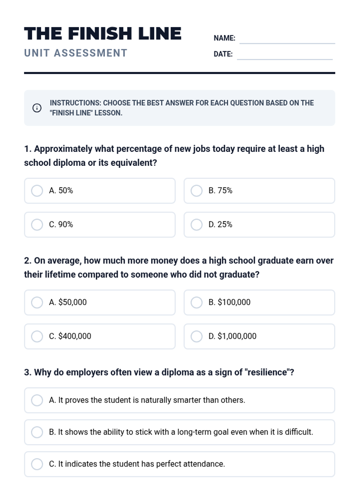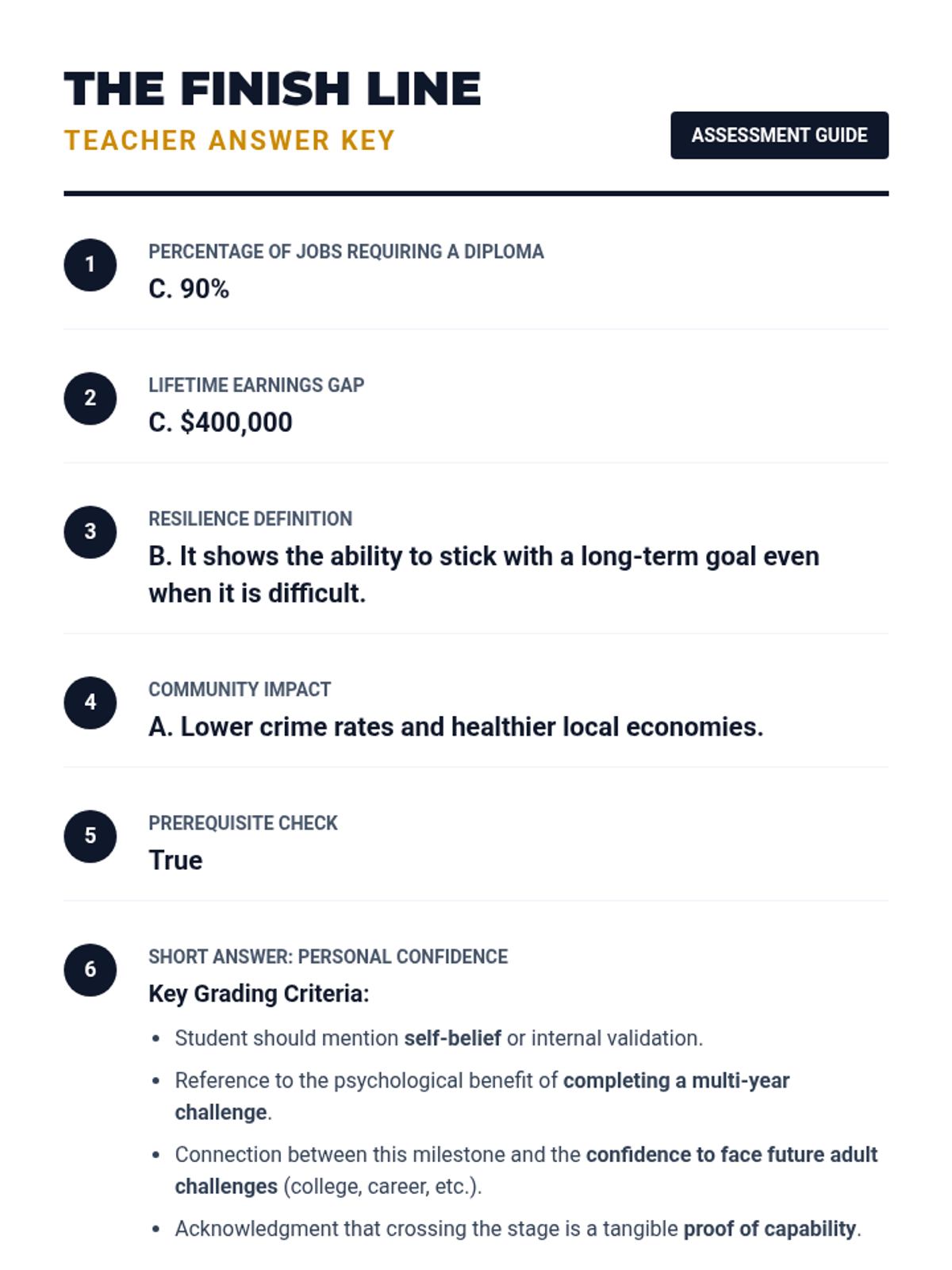 A comprehensive lesson exploring the multifaceted benefits of graduating high school and beyond, focusing on career opportunities, financial stability, personal growth, and community impact.