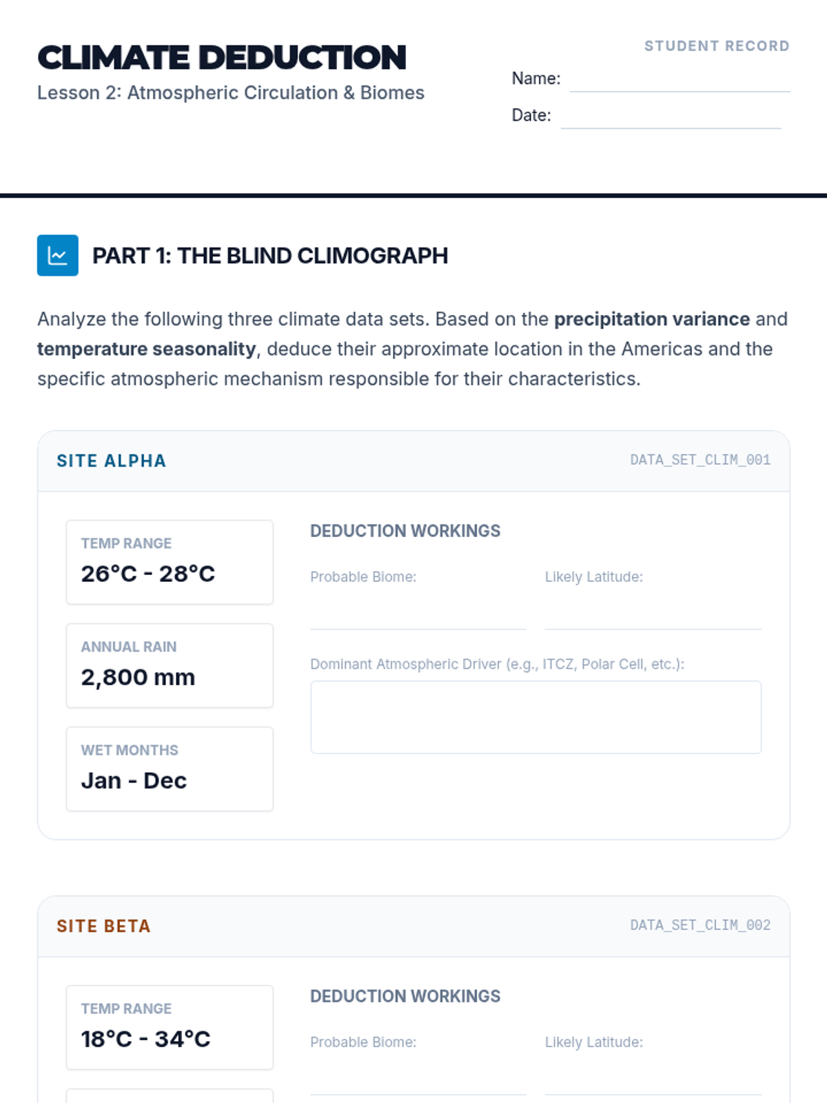 This lesson breaks down the climatic controls of the Americas, specifically the Hadley cells, the Intertropical Convergence Zone (ITCZ), and the rain shadow effect. Students will model how these atmospheric forces create distinct biomes ranging from the Canadian Tundra to the Amazon Rainforest.