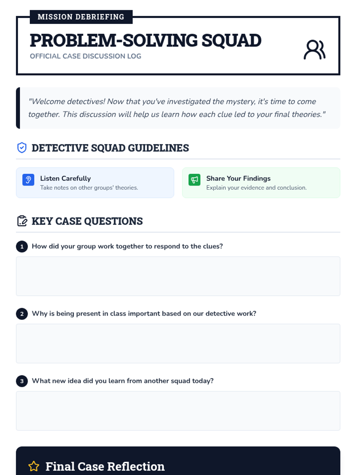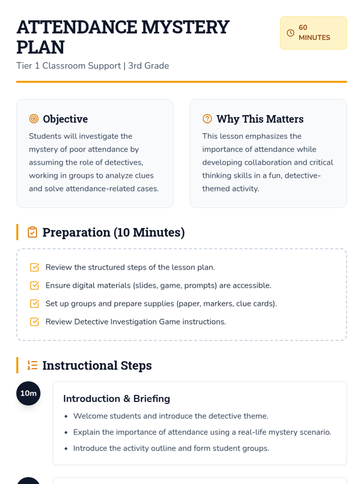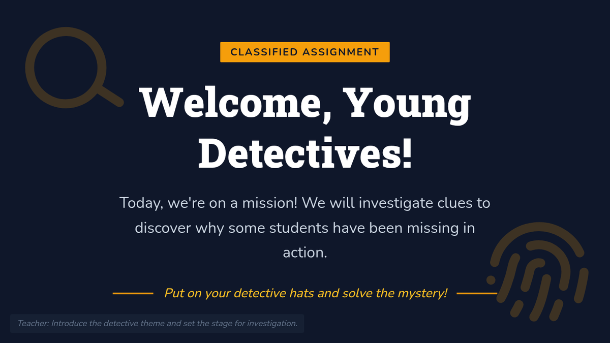 A 60-minute interactive detective-themed lesson for 3rd graders to understand the importance of school attendance through collaboration and critical thinking.