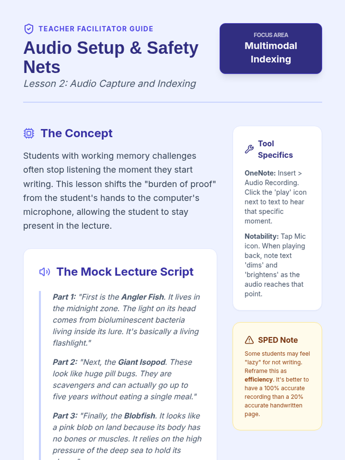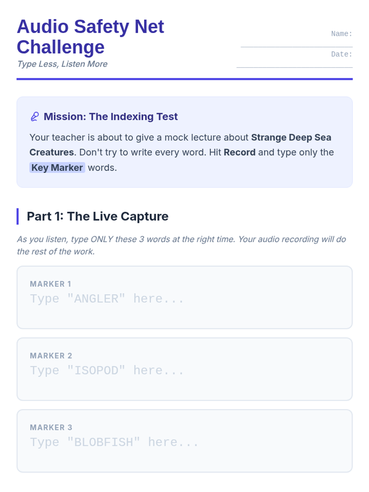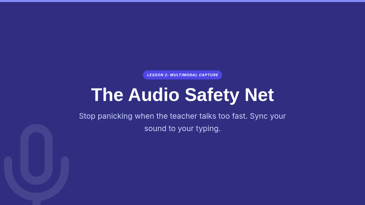 Introduces tools that sync audio recording with typed markers, allowing students to focus on listening while having a recording 'safety net' for later review.