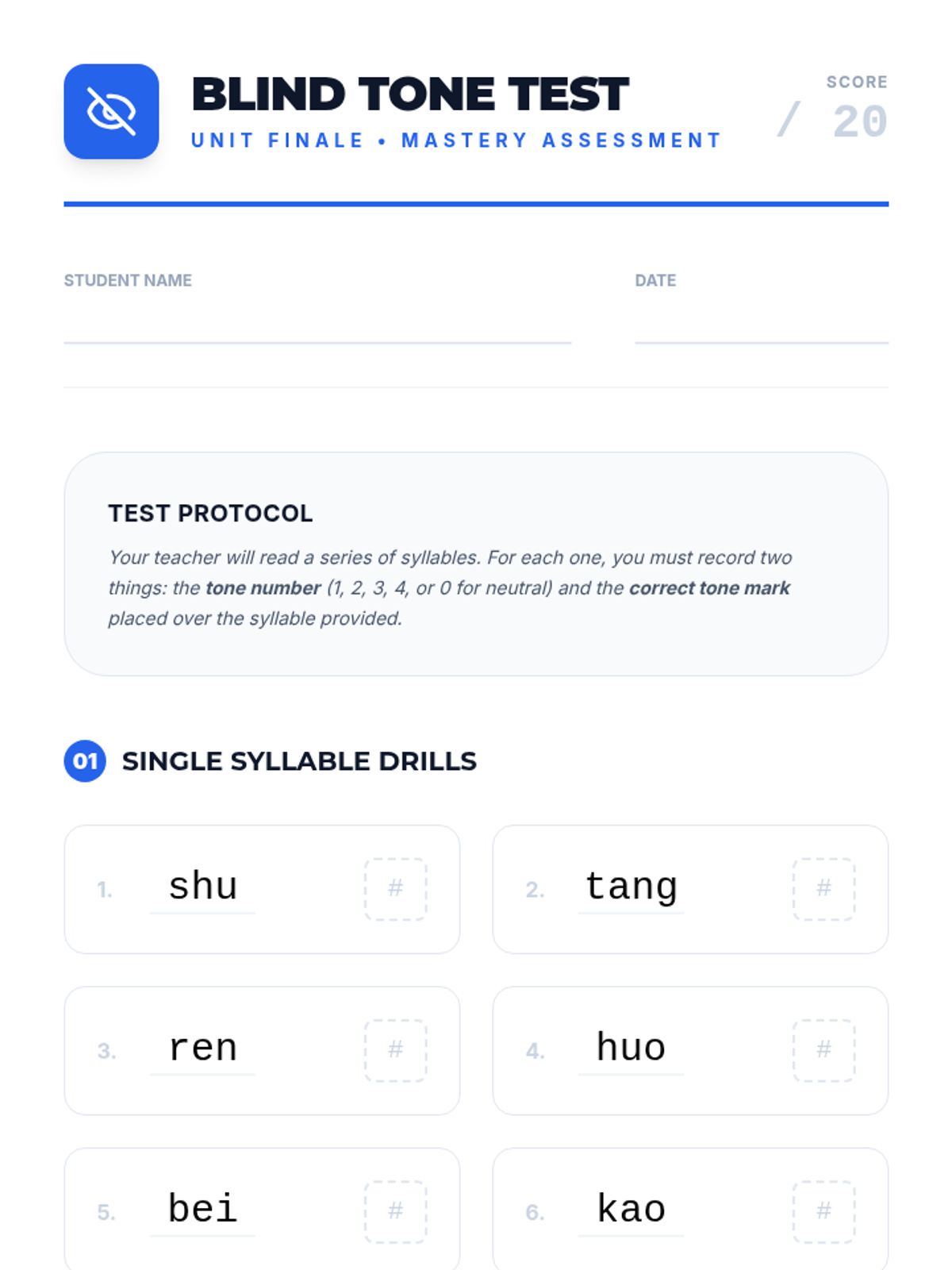 Refining auditory discrimination through minimal pair drills and a mastery-based 'blind' listening assessment.
