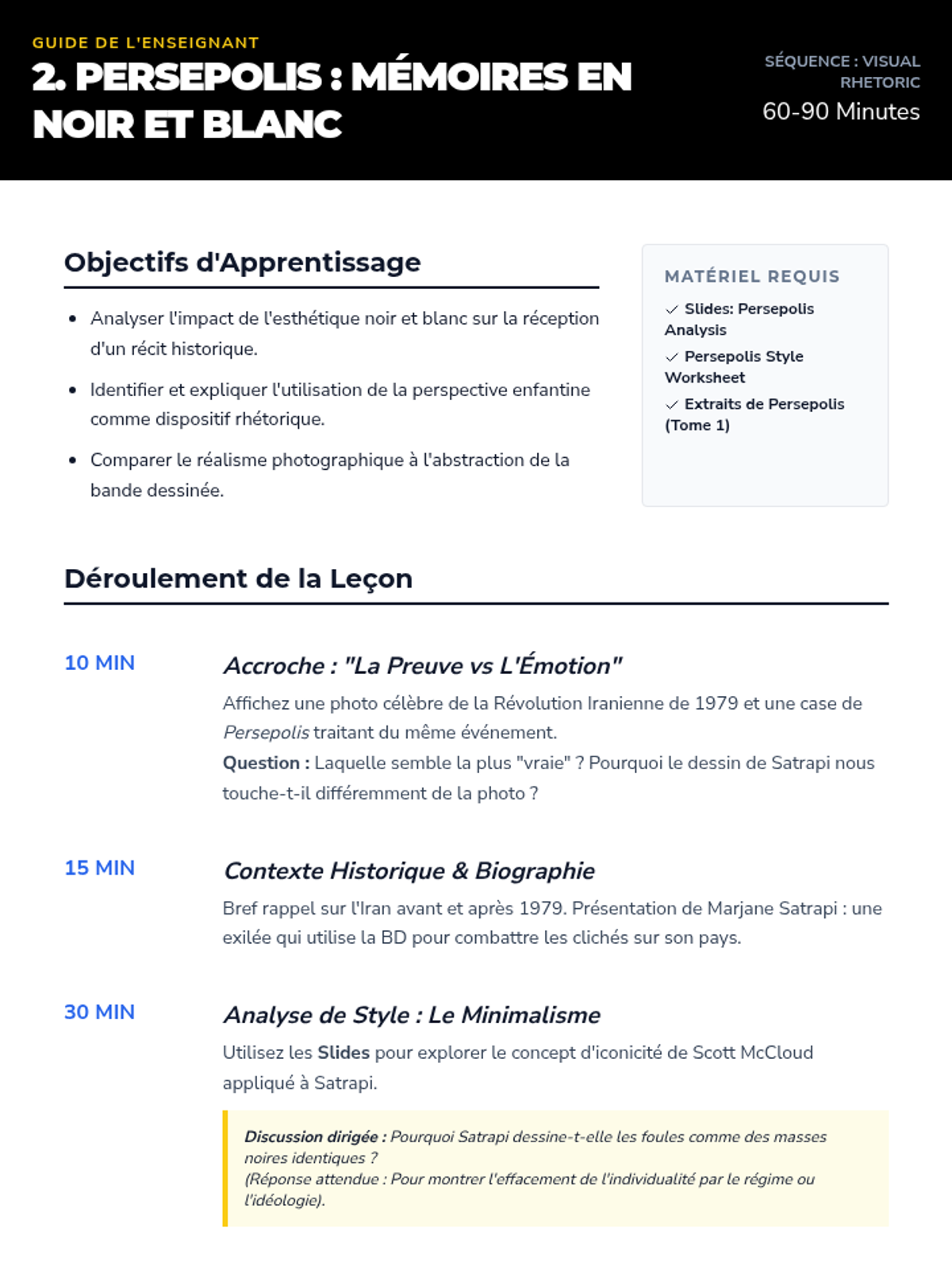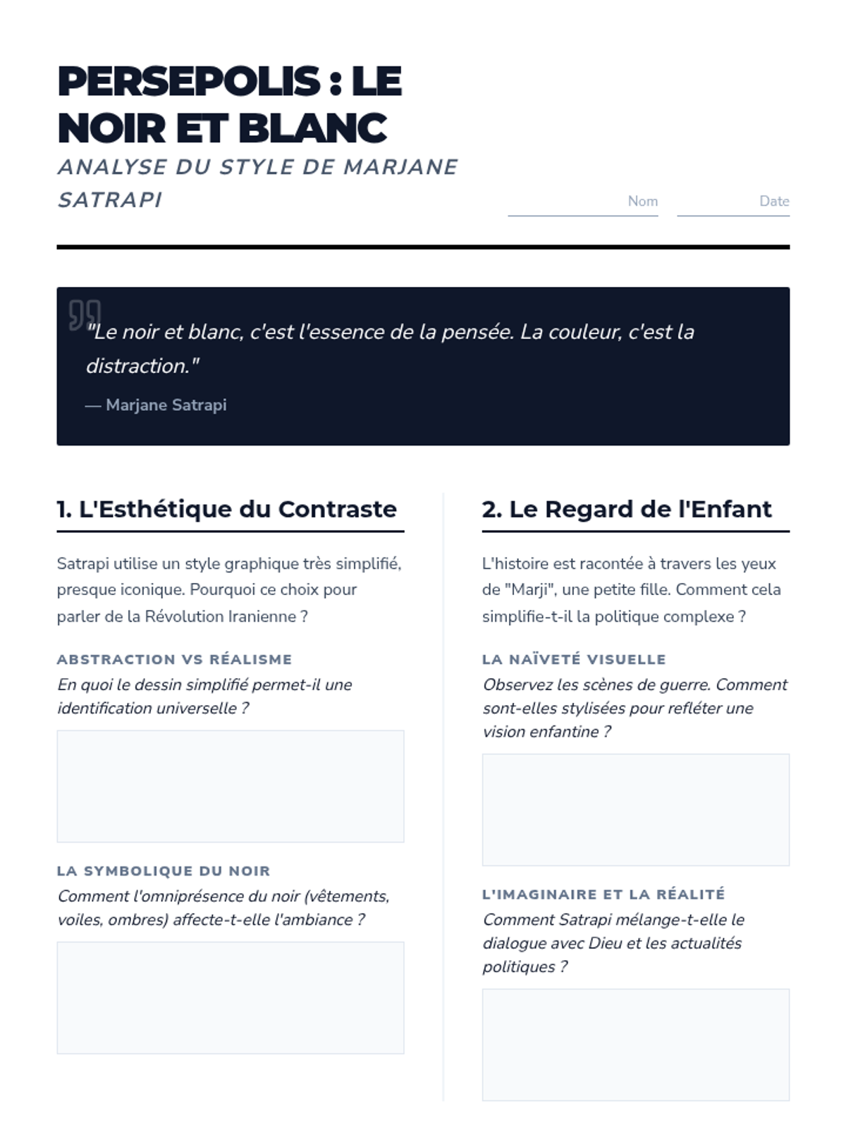 An analysis of Marjane Satrapi's Persepolis, focusing on the rhetorical power of the black-and-white aesthetic and the use of a child's perspective to narrate the Iranian Revolution.