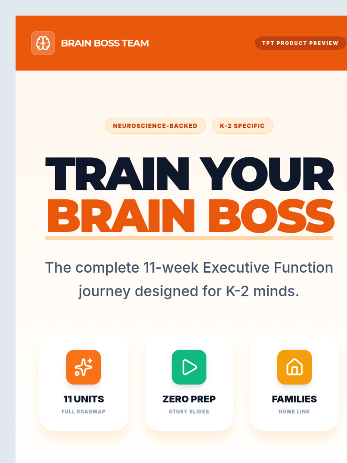 A collection of marketing and administrative resources for the Brain Boss and Neural Nexus curriculum, including product previews and implementation overviews.