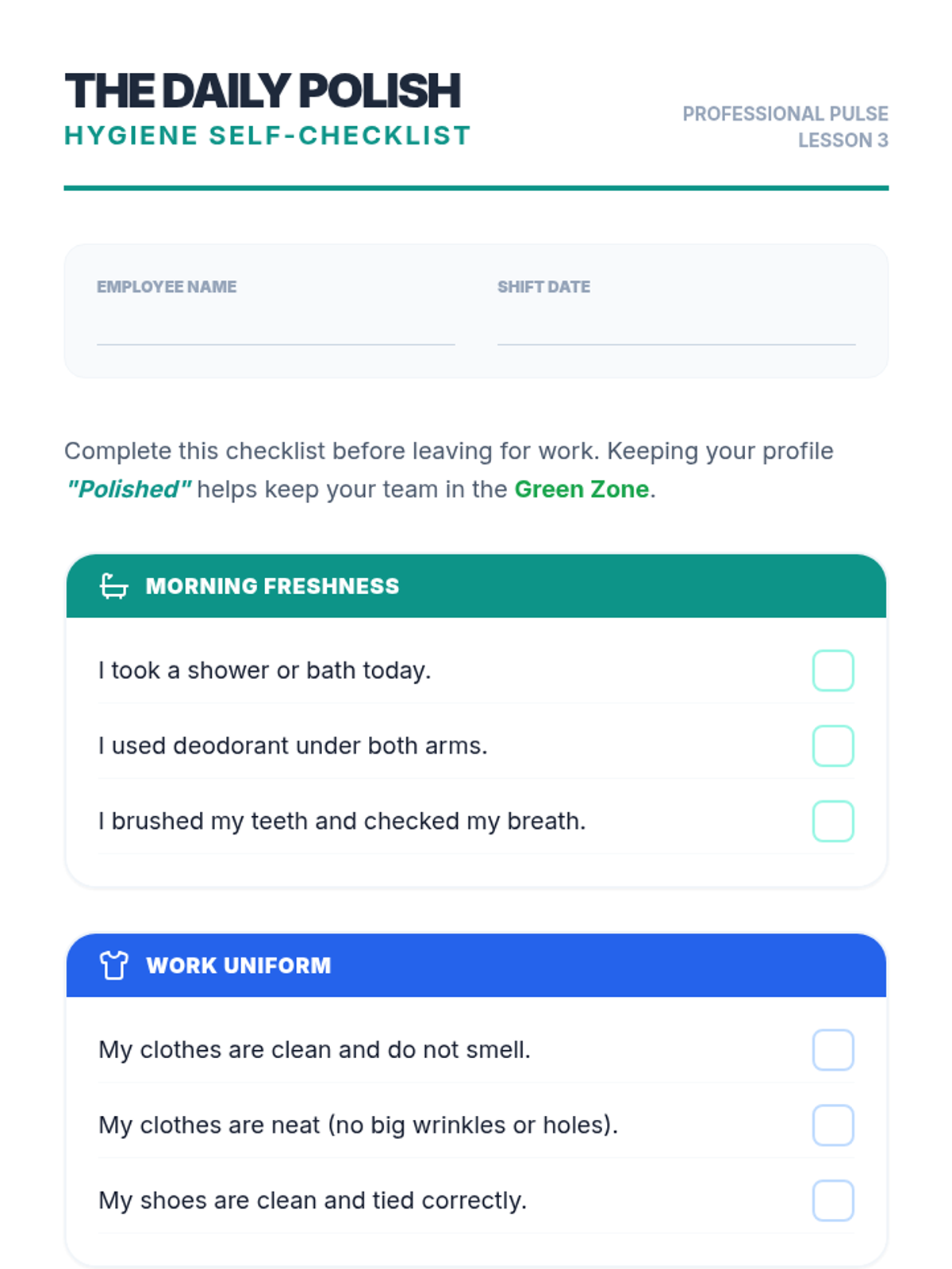 Students explore how personal hygiene and grooming habits impact the 'Zones' of their coworkers and supervisors in a professional environment.