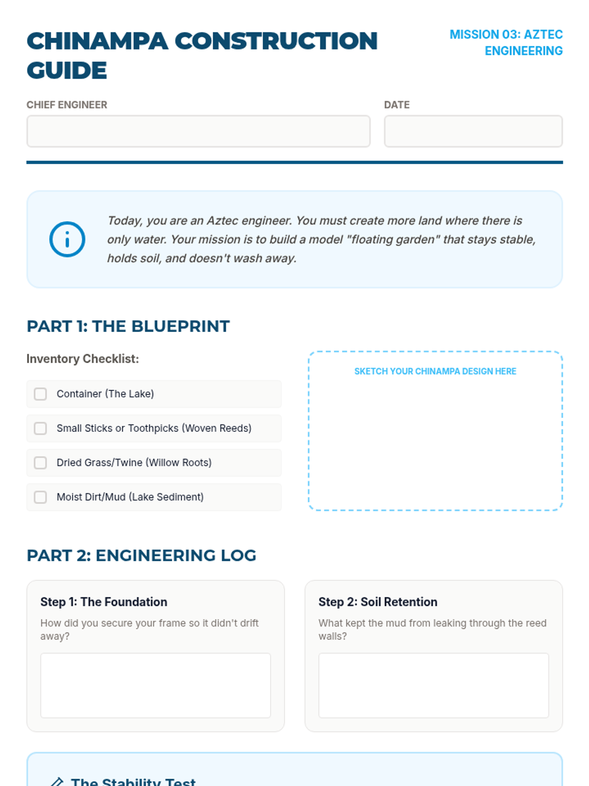 Students explore the engineering behind Aztec chinampas and how they created productive farmland in the middle of a lake.