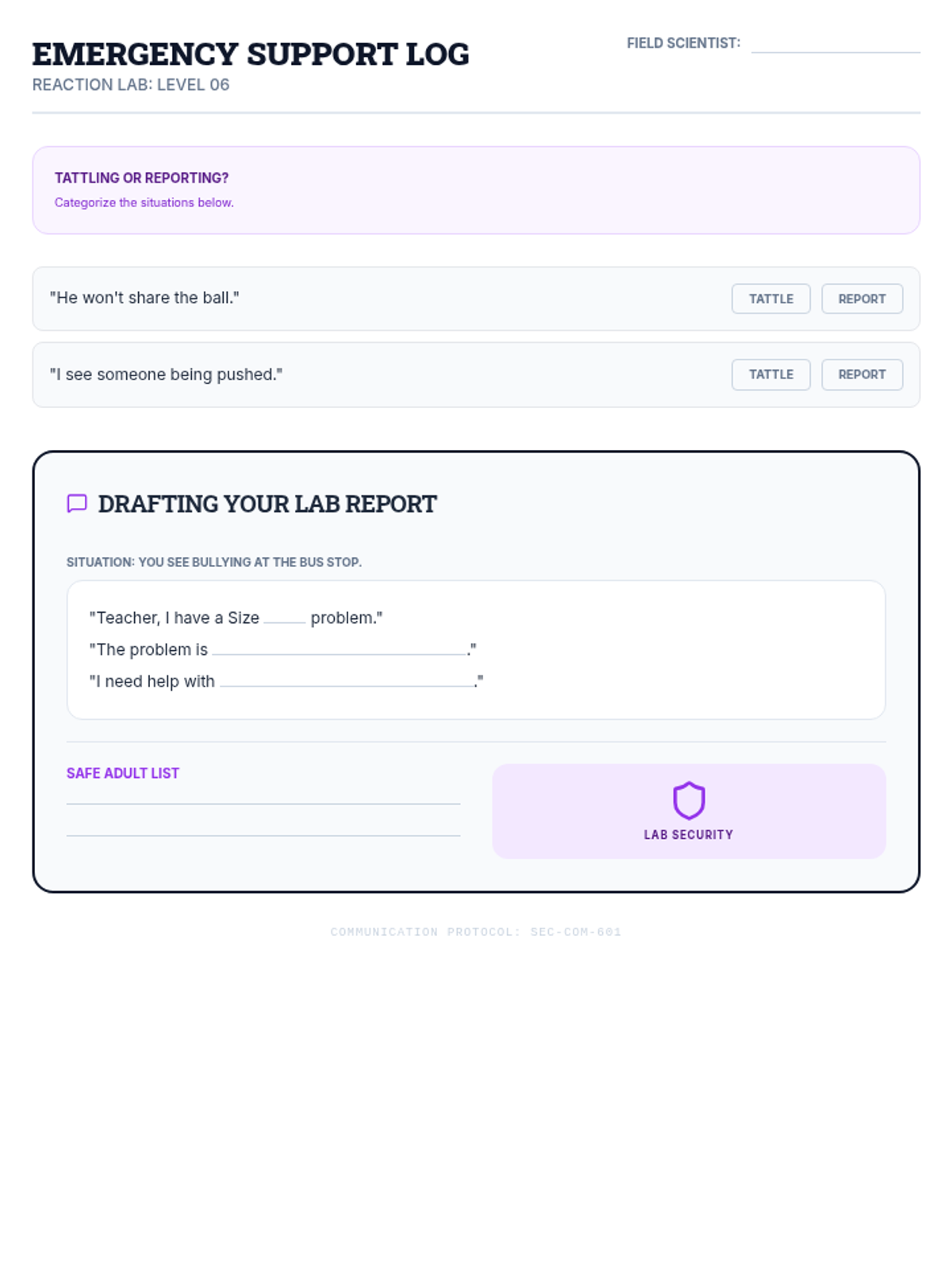 A Tier 2 intervention lesson designed for a seventh-grade student to identify personal values and build the confidence to stand up against social exclusion. Through architectural-themed activities, the student builds a 'backbone' of core beliefs and practices assertive communication.