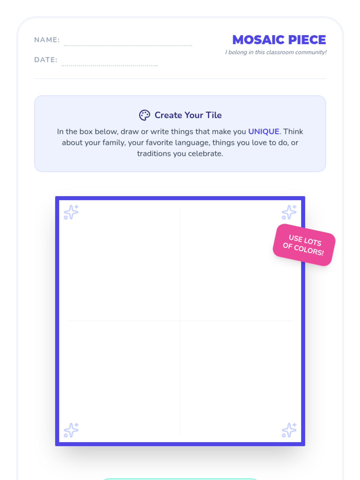 A 30-minute introductory lesson for grades 2-4 focused on celebrating individual identities and building an inclusive classroom community through a collaborative art project.
