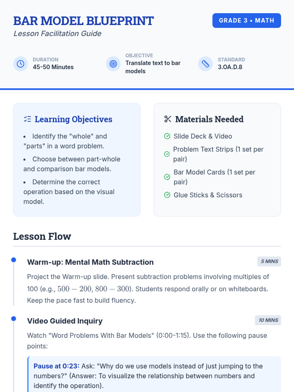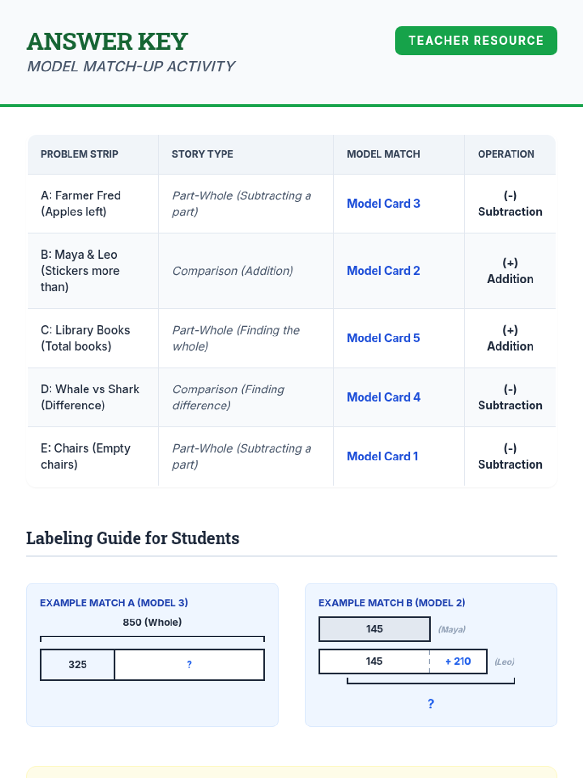 Students will learn to translate word problems into bar models to determine whether to add or subtract, focusing on part-whole and comparison relationships.