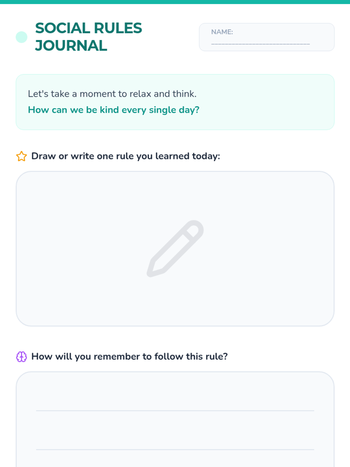 A social story and visual aid lesson focused on developing cooperative behaviors in first-grade students, specifically targeting active listening, small group collaboration, and hallway safety.