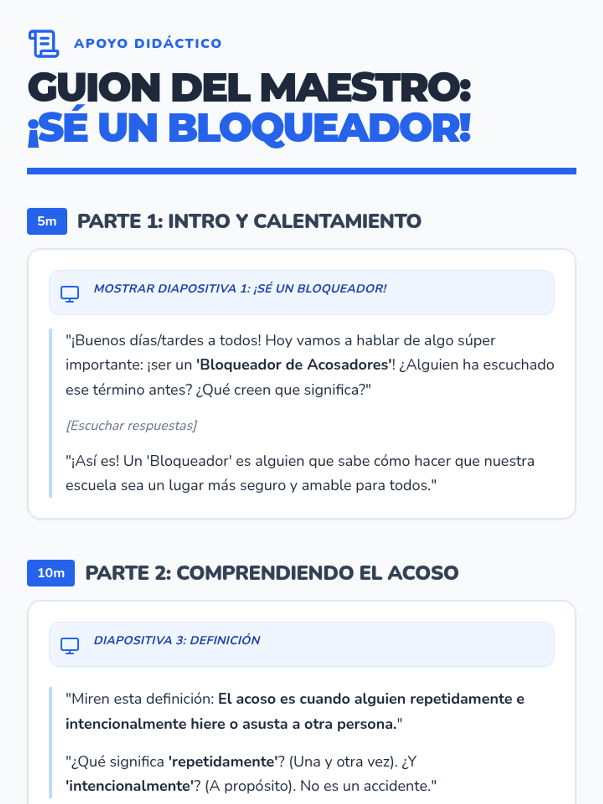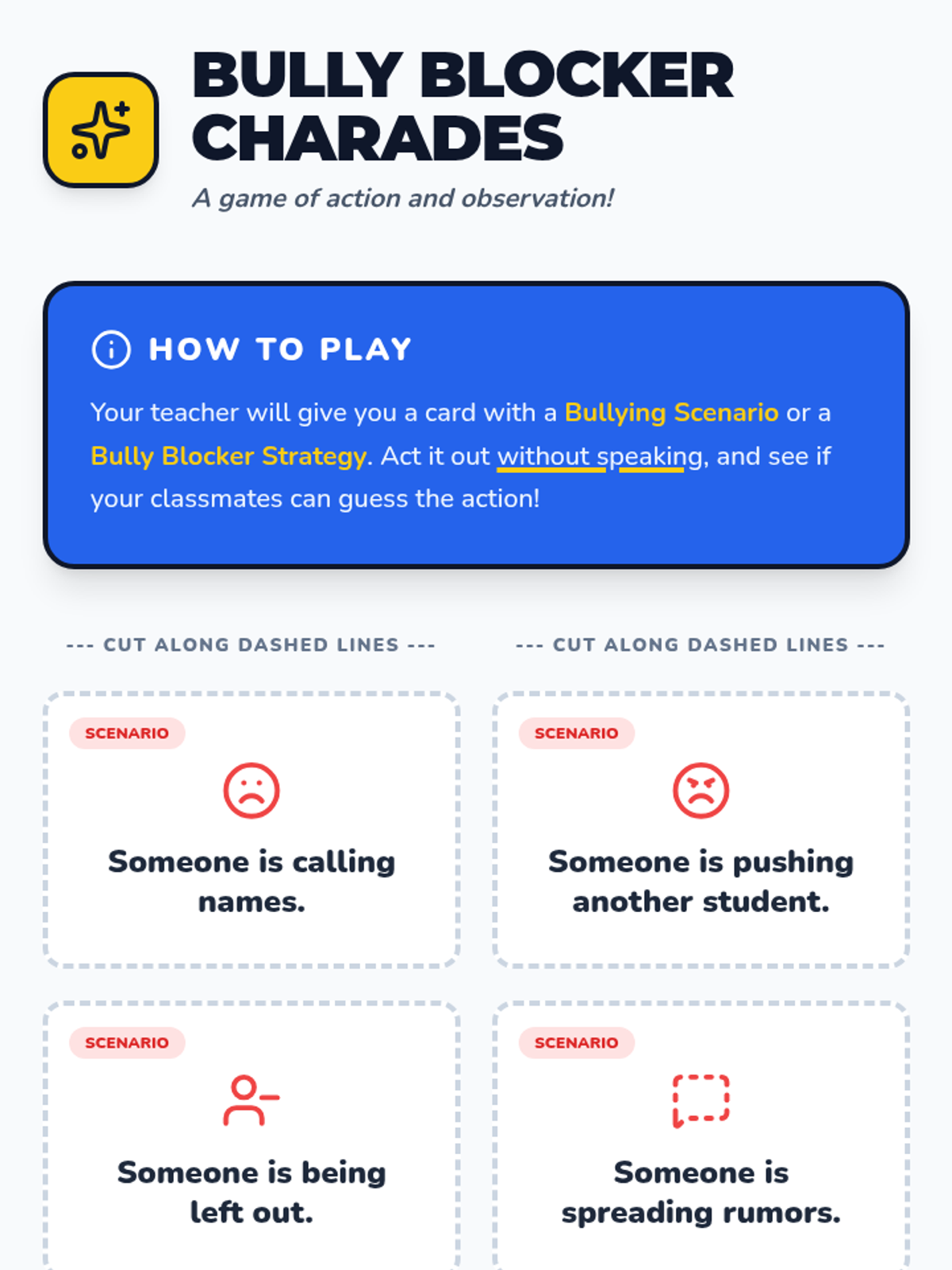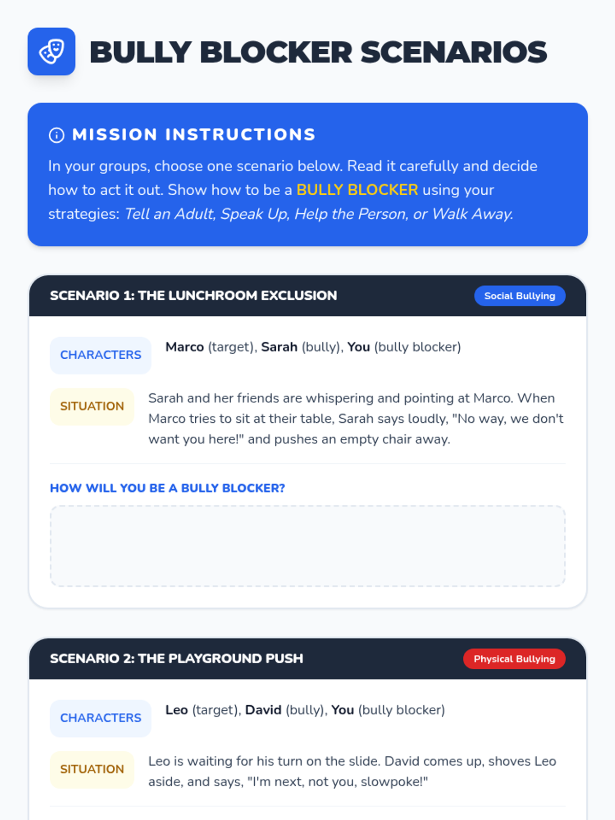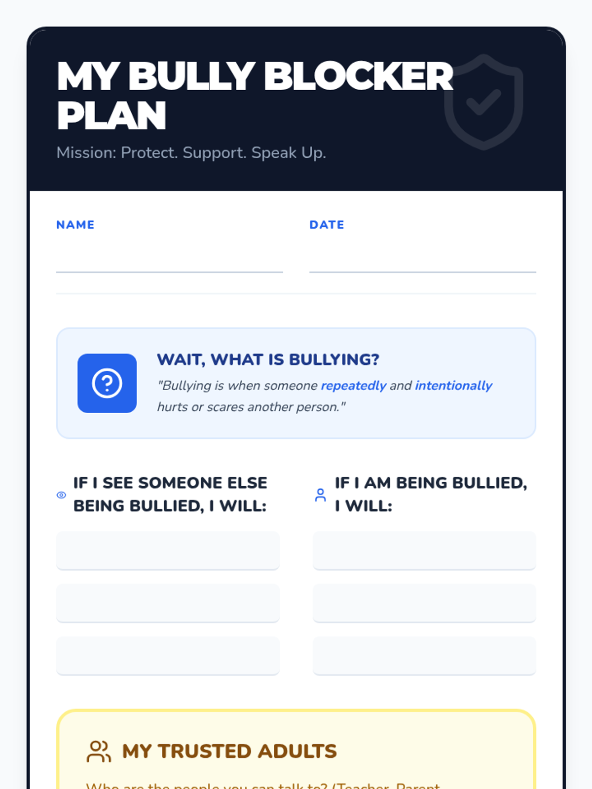A 45-minute 3rd-grade lesson based on the ASCA model that empowers students to identify, prevent, and respond to bullying using 'Bully Blocker' strategies. Students engage in interactive discussions, role-playing, and personal planning to foster a safer school environment.