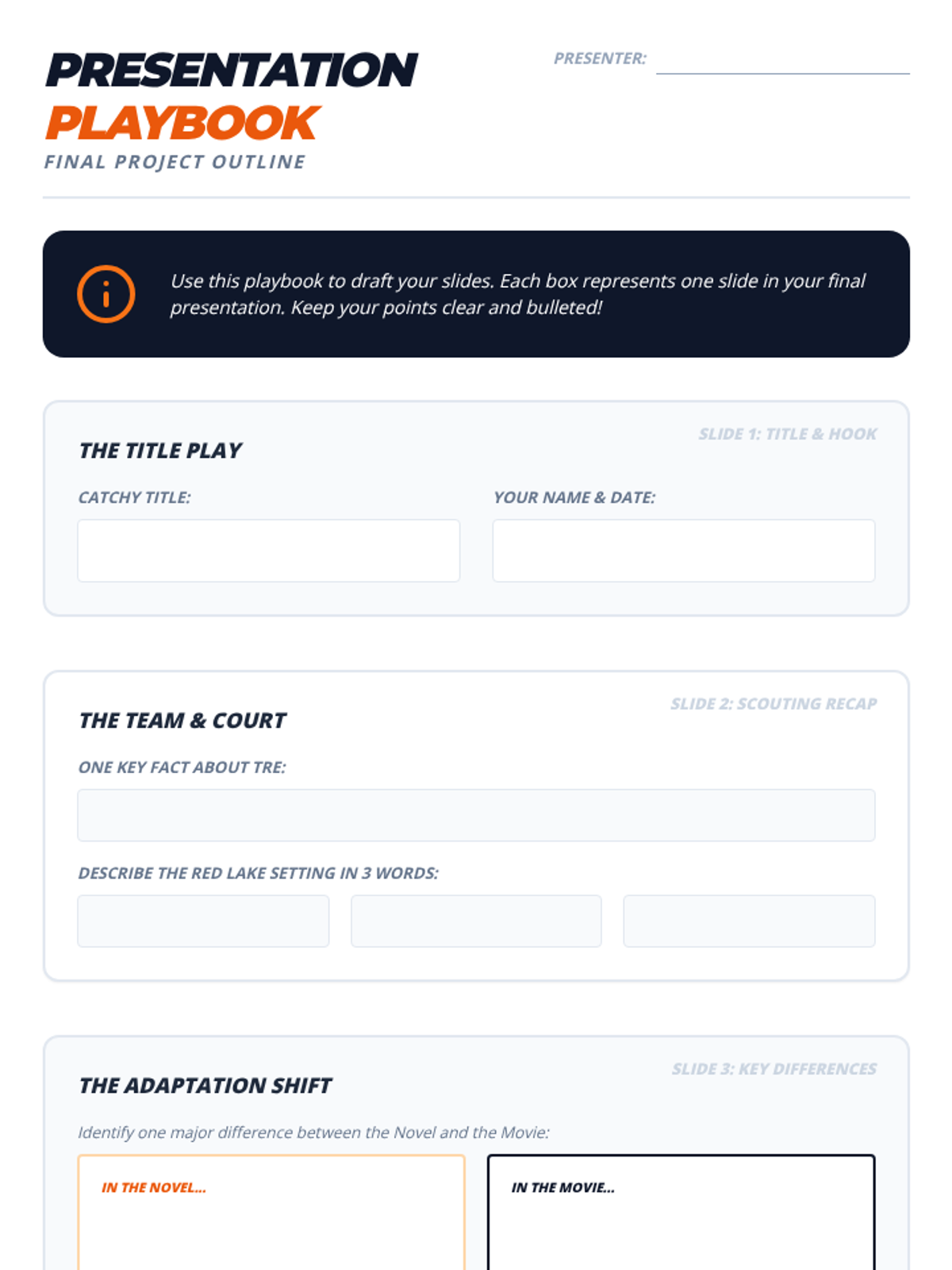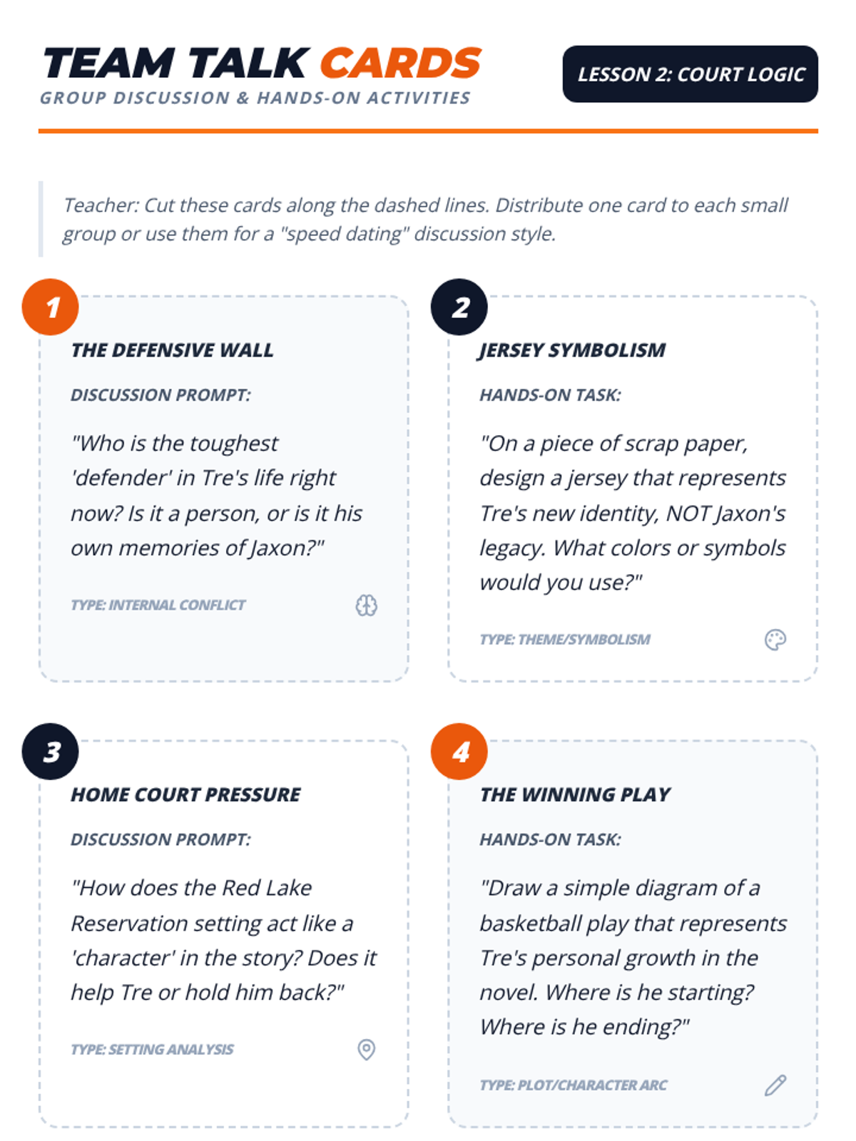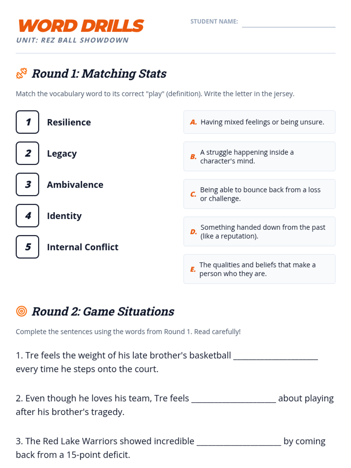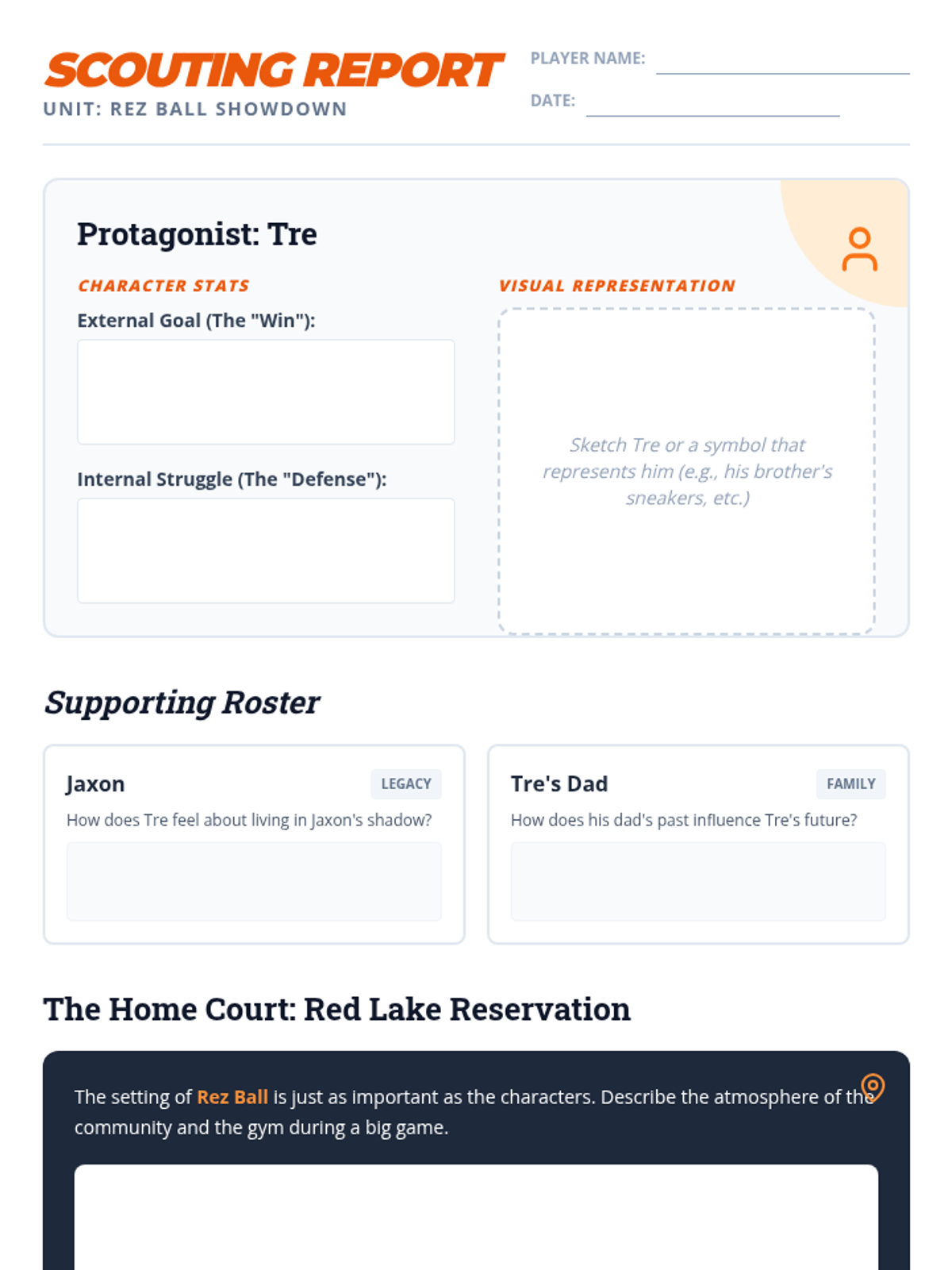 Introduction to the setting of Red Lake Reservation, the protagonist Jaxon Stone, and key vocabulary for 'Rez Ball'. Students will begin their character scouting reports.
