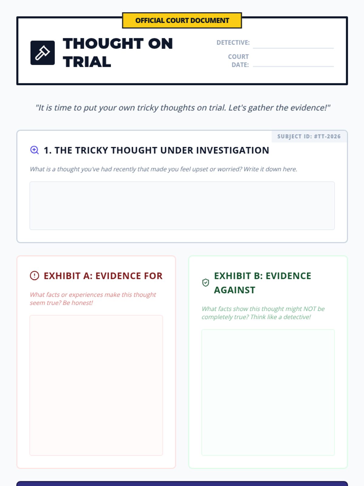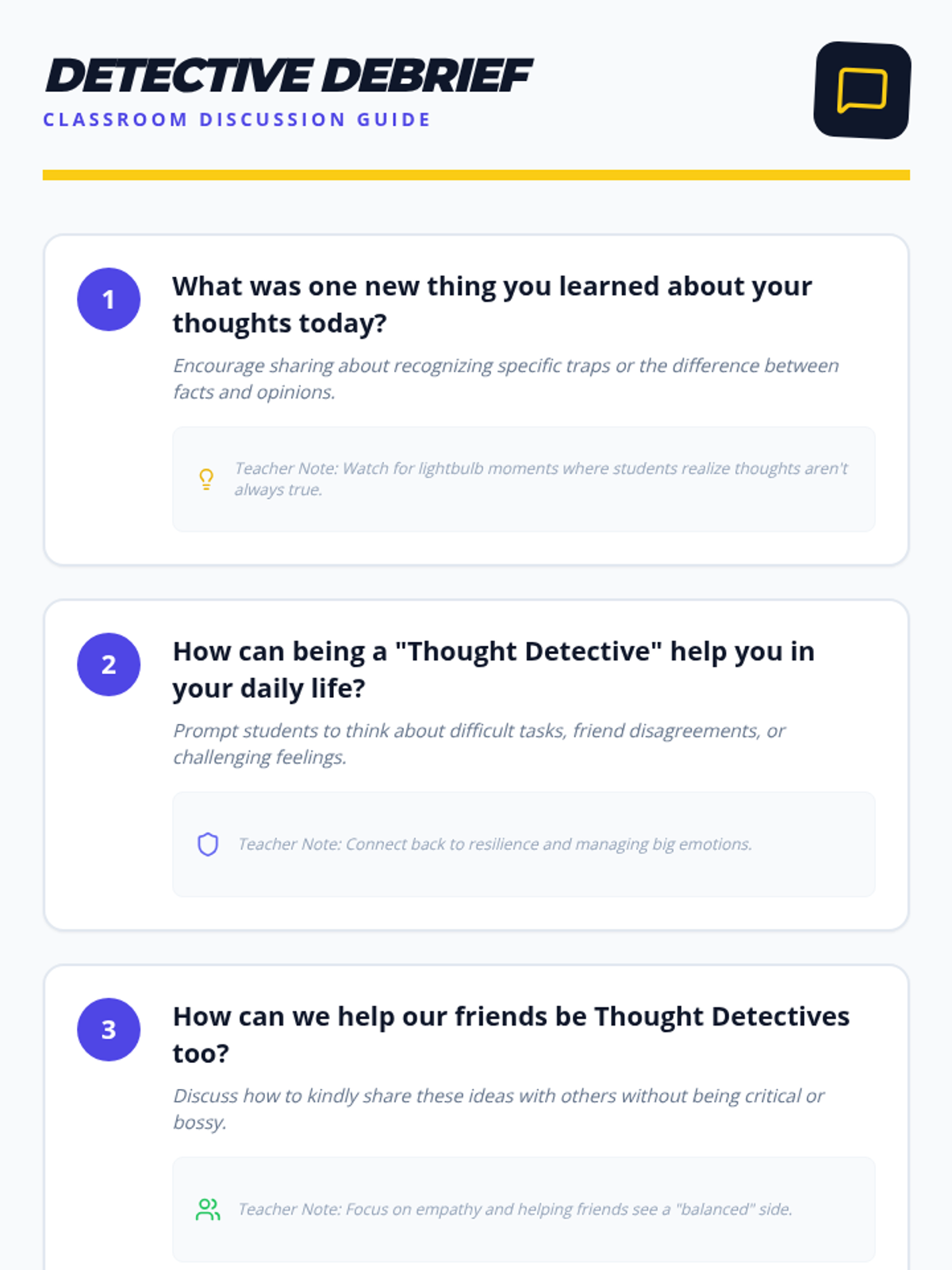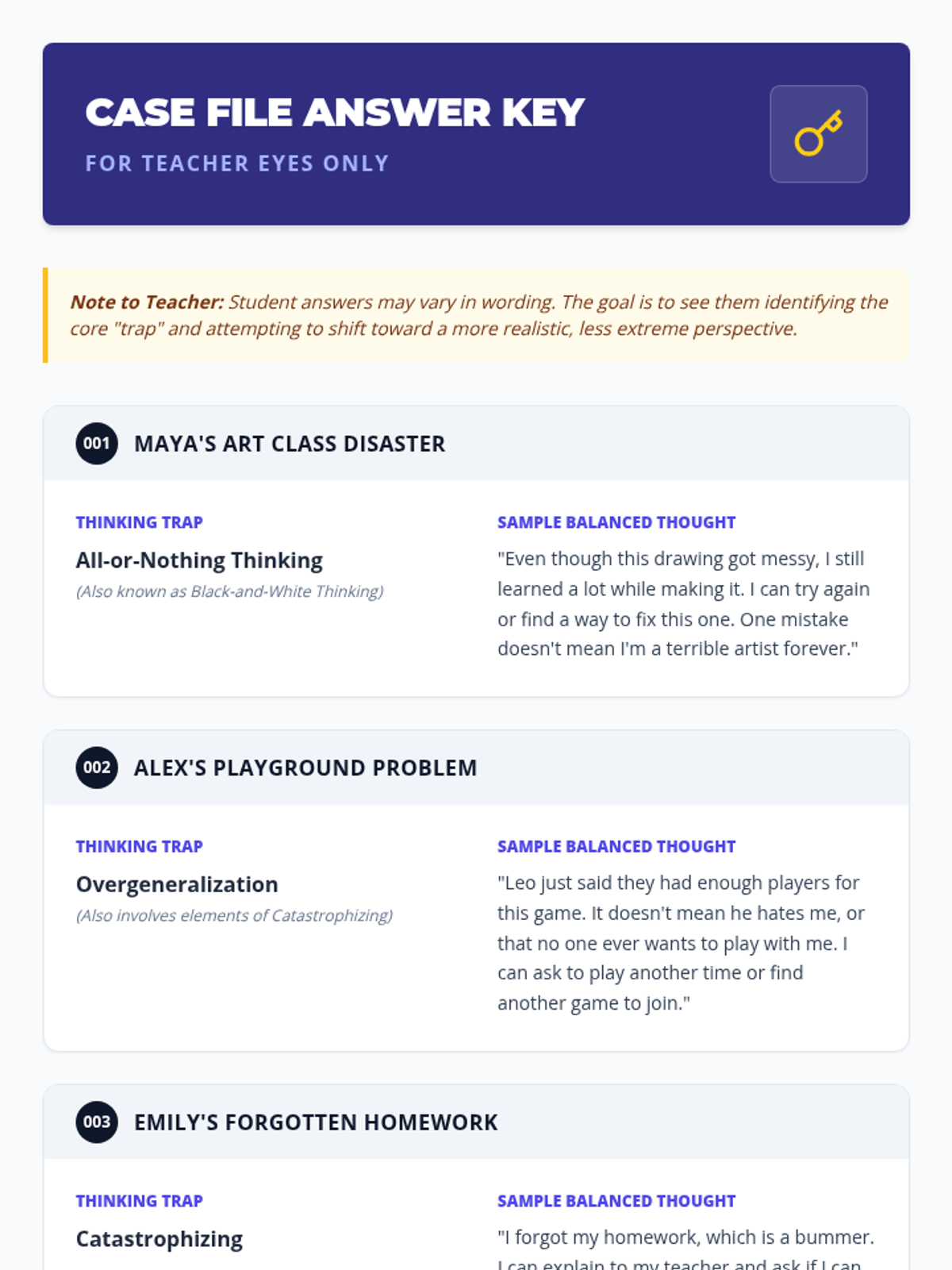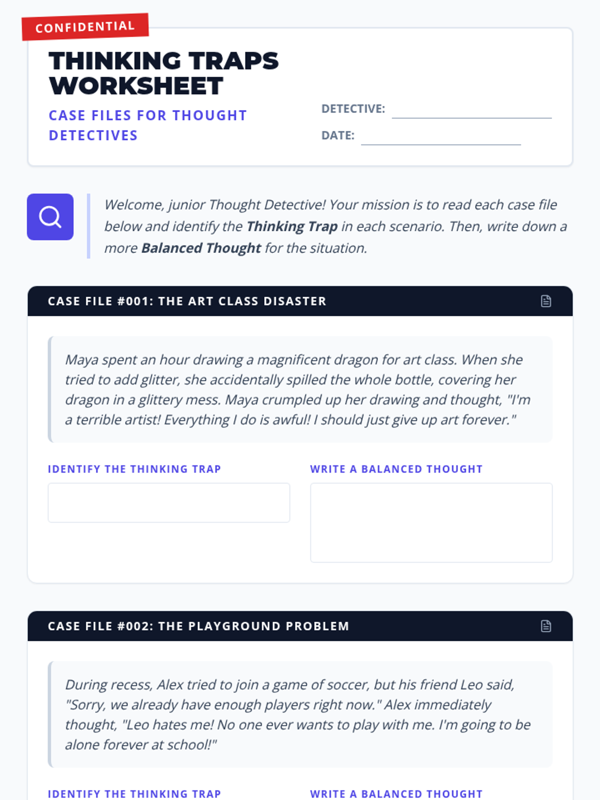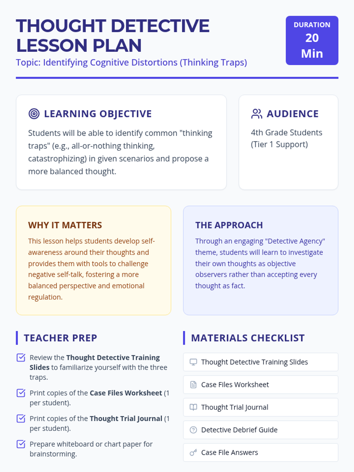 A 20-minute lesson for 4th graders to identify and challenge common 'thinking traps' using a detective-themed approach to foster balanced thinking and emotional resilience.
