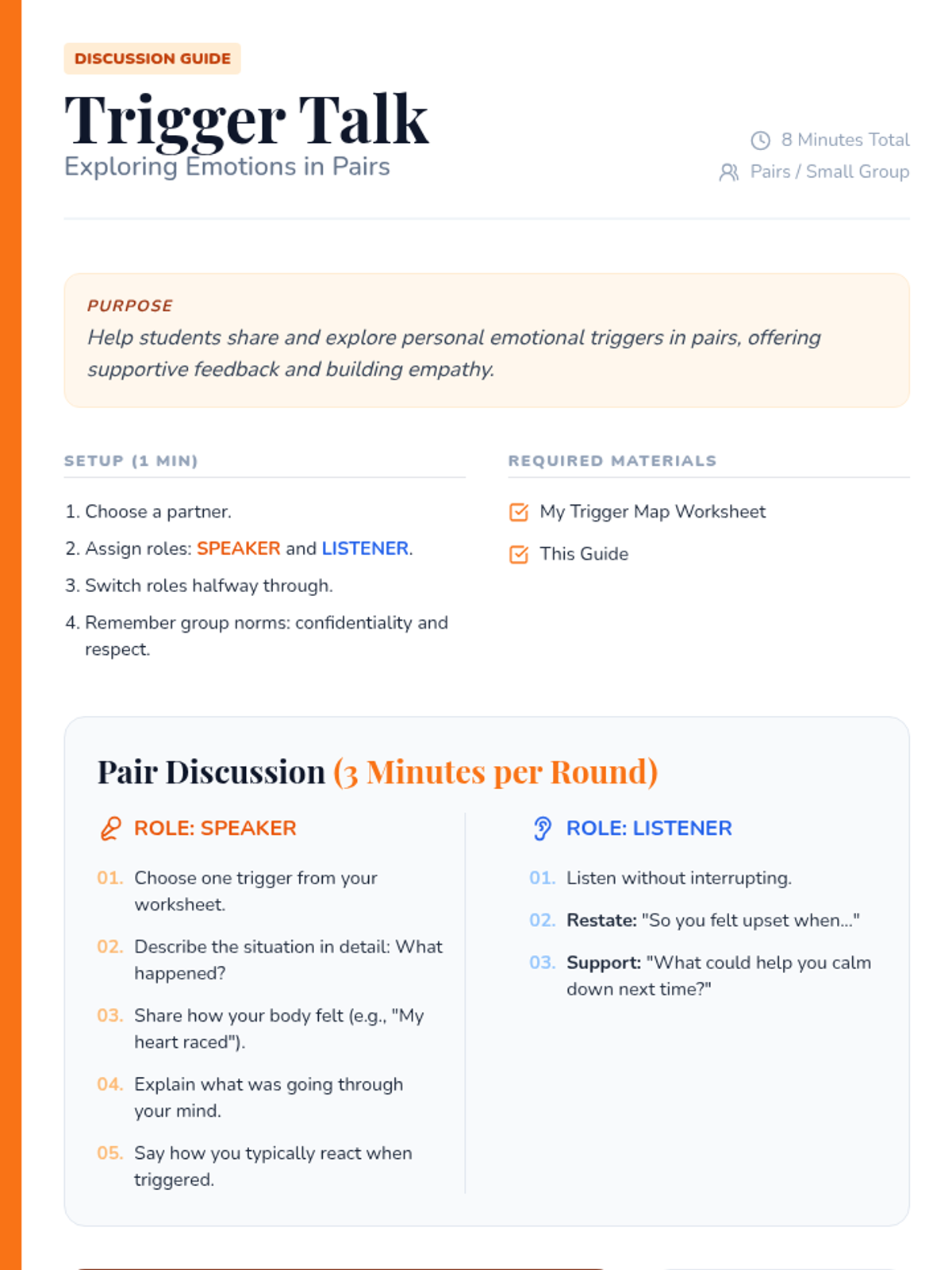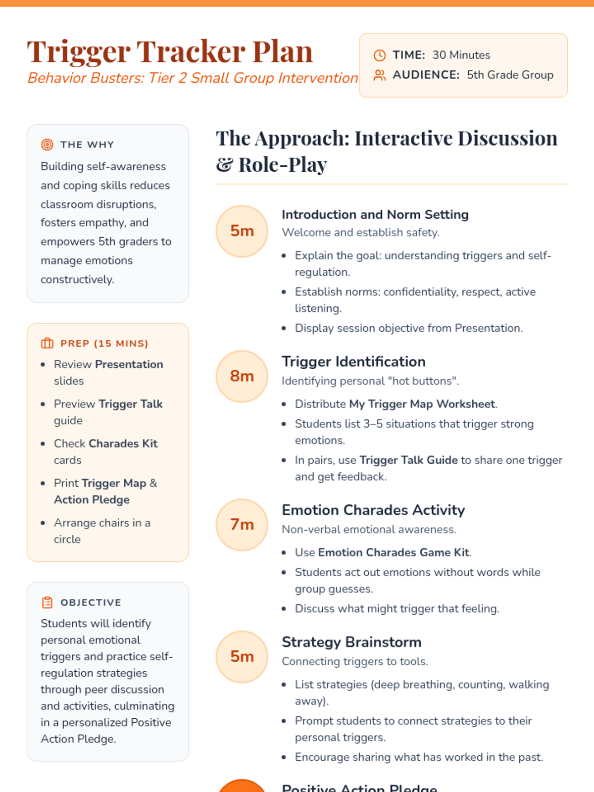 A small-group intervention for 5th graders to identify emotional triggers and develop self-regulation strategies through interactive discussion and peer support.