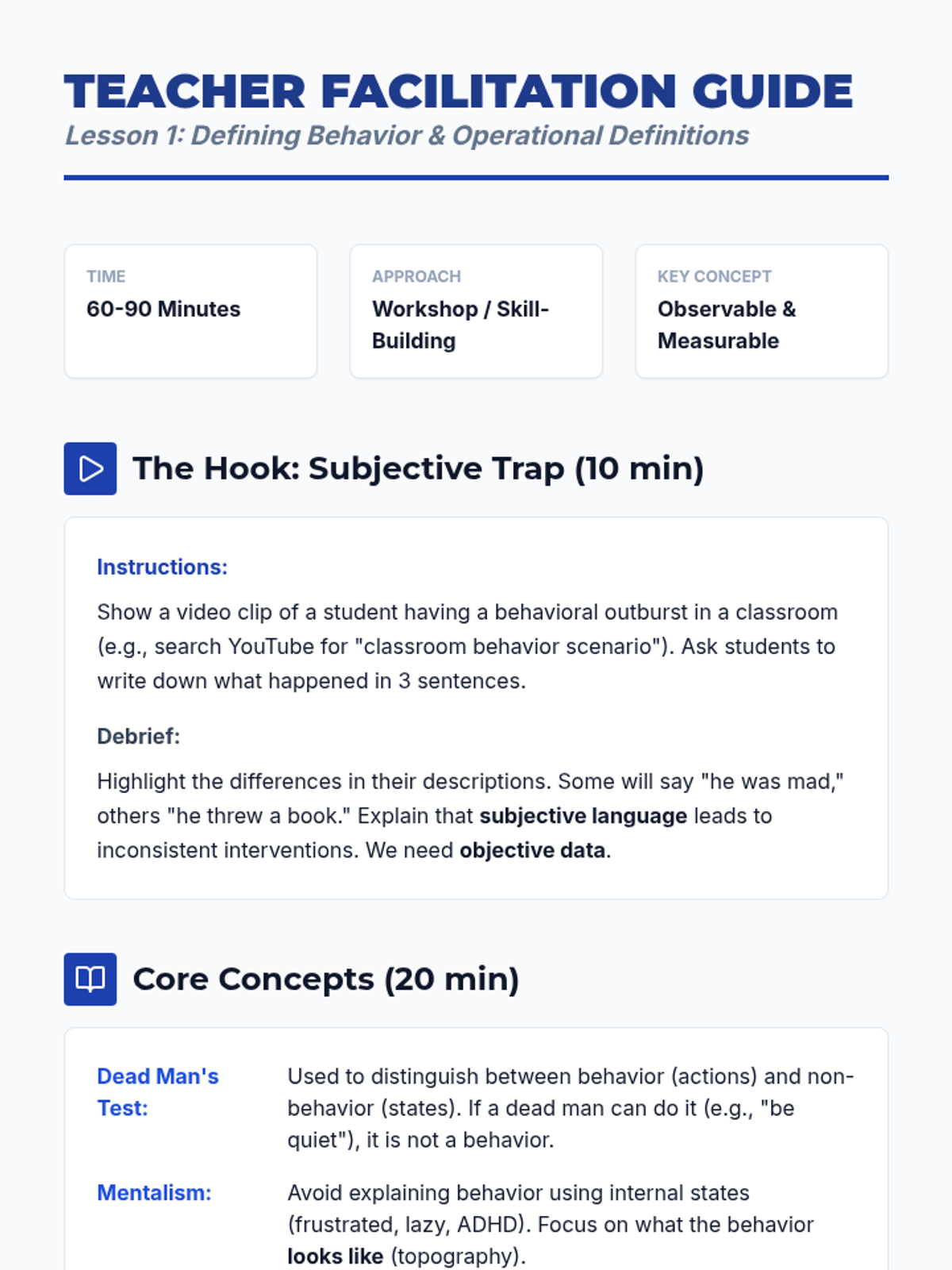 Focuses on the transition from mentalistic language to observable, measurable descriptions of behavior using the Dead Man's Test.