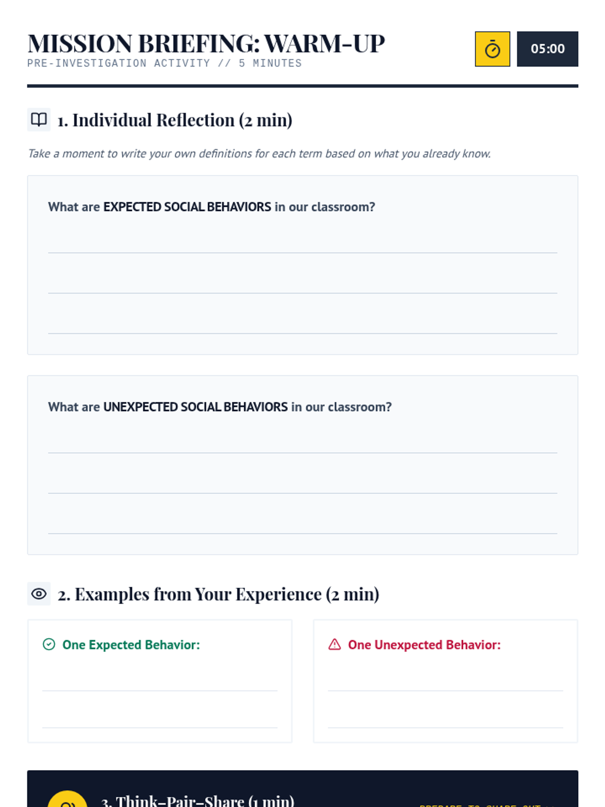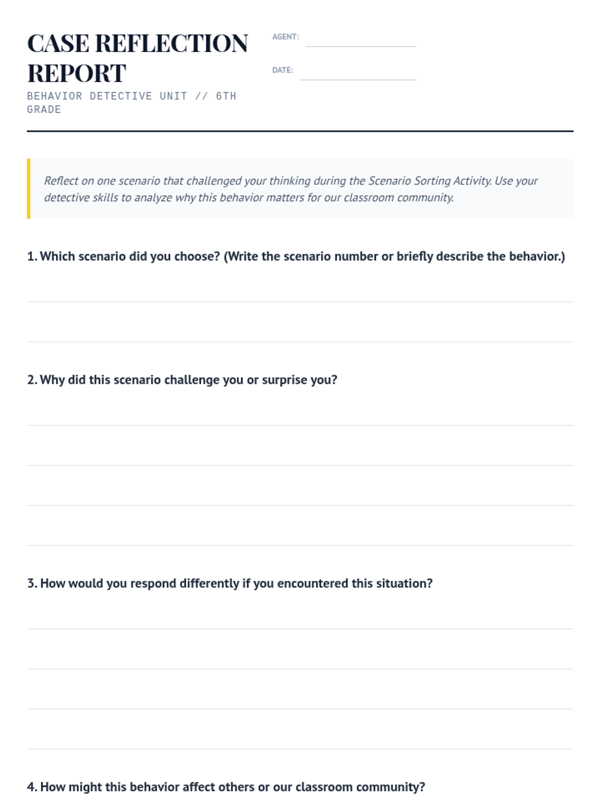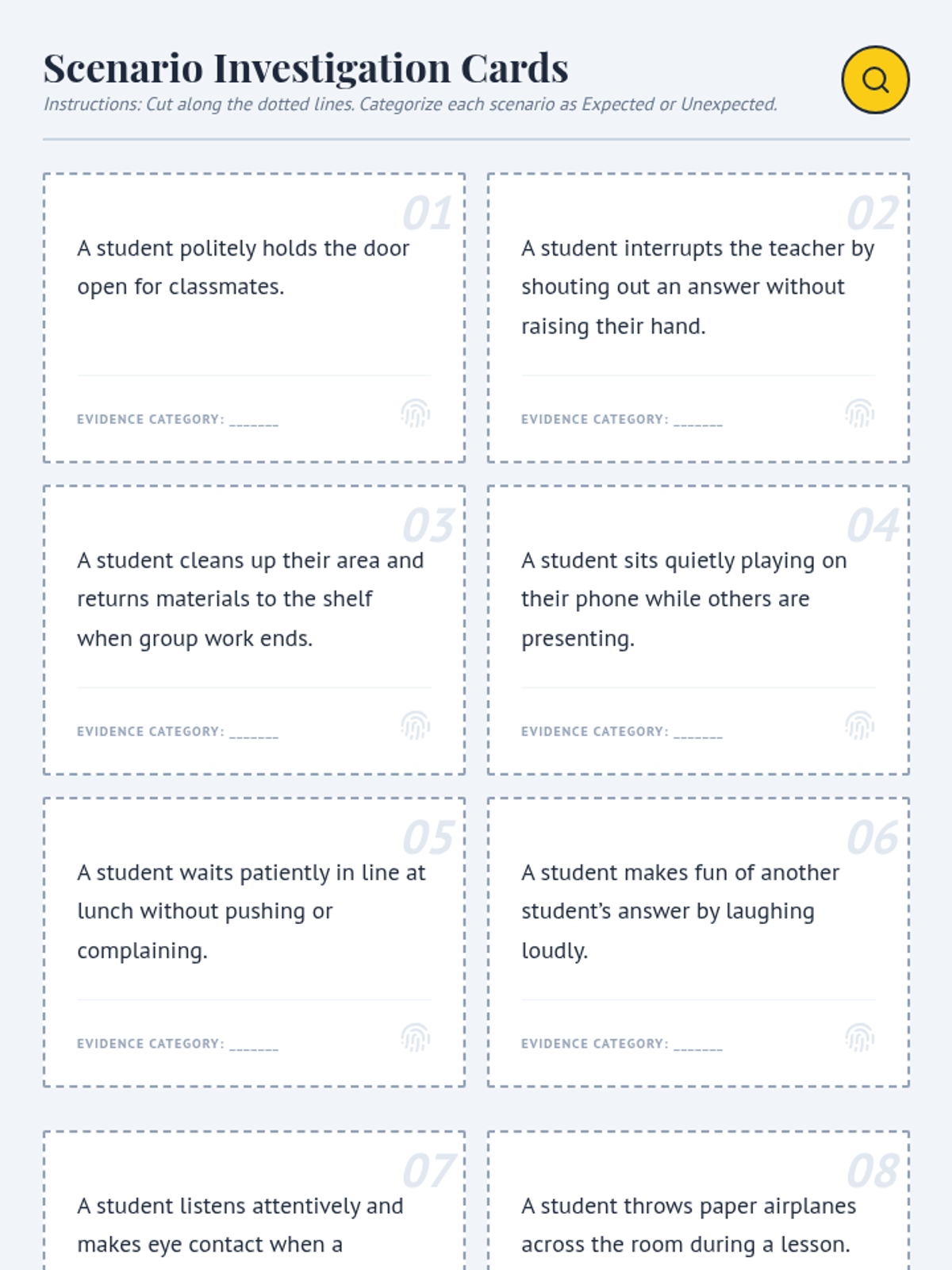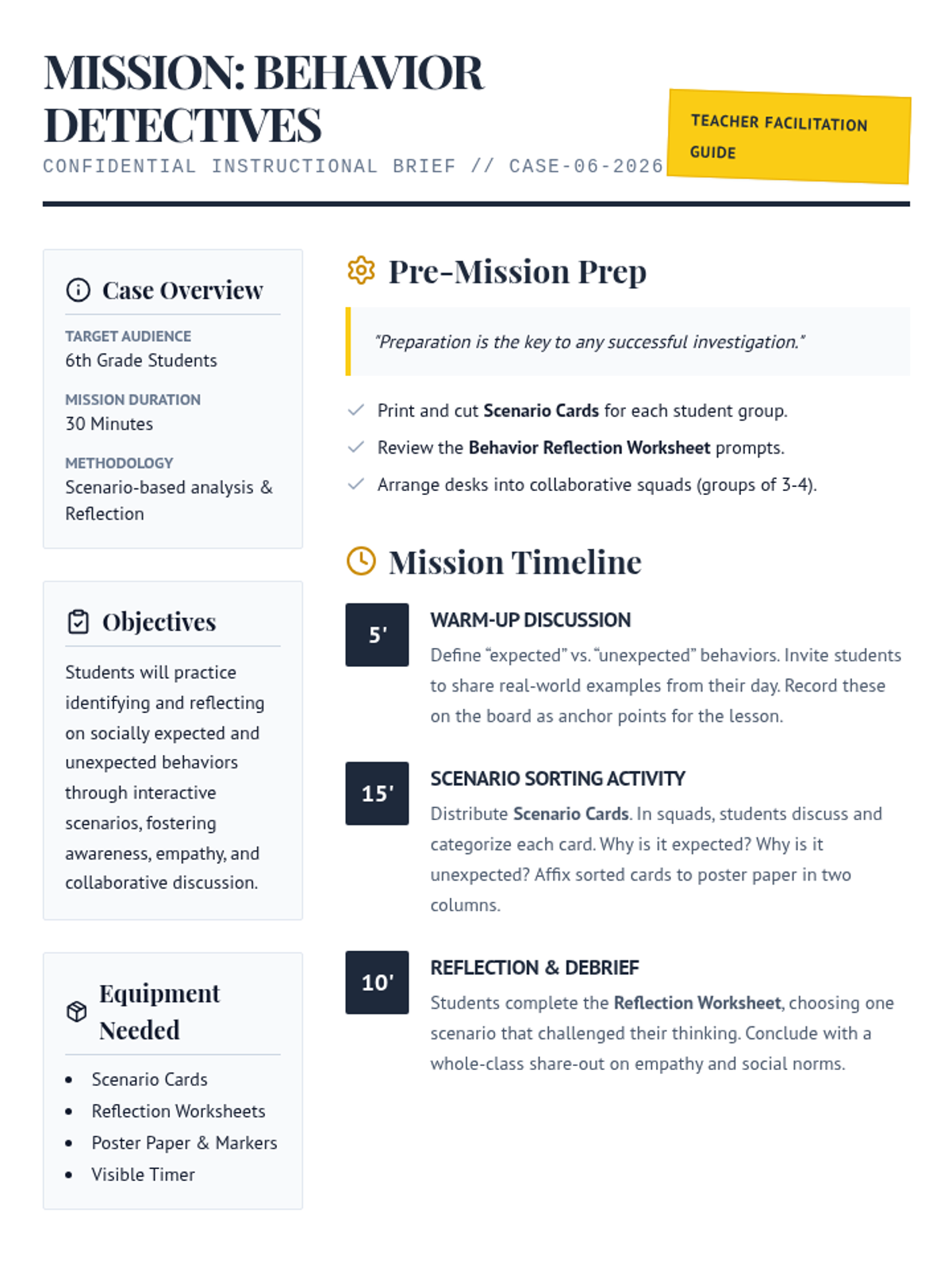 In this 30-minute lesson, 6th graders explore social expected and unexpected behaviors through interactive scenarios. Students will practice identifying and reflecting on behaviors to strengthen classroom community and social skills.