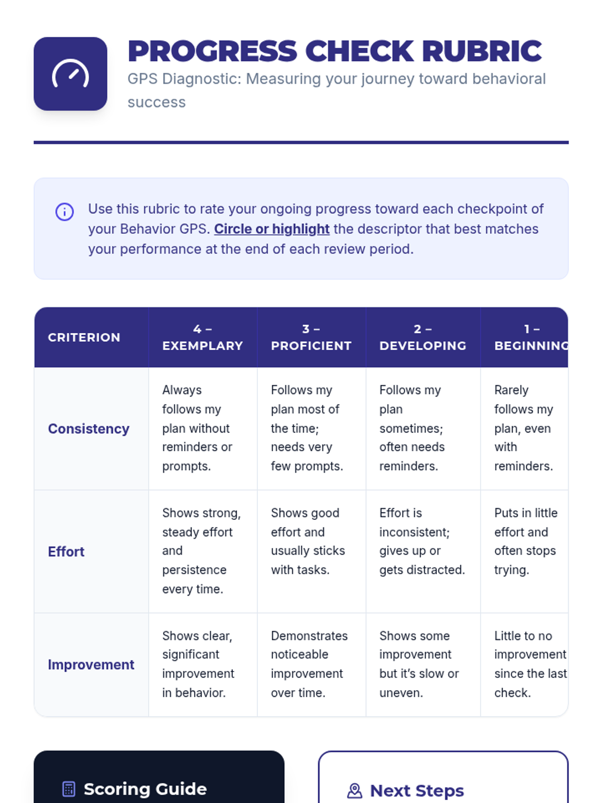 An individualized roadmap guiding the student from current challenges to desired behaviors, using goal-setting, checkpoints, and rewards for a 9th grade student.