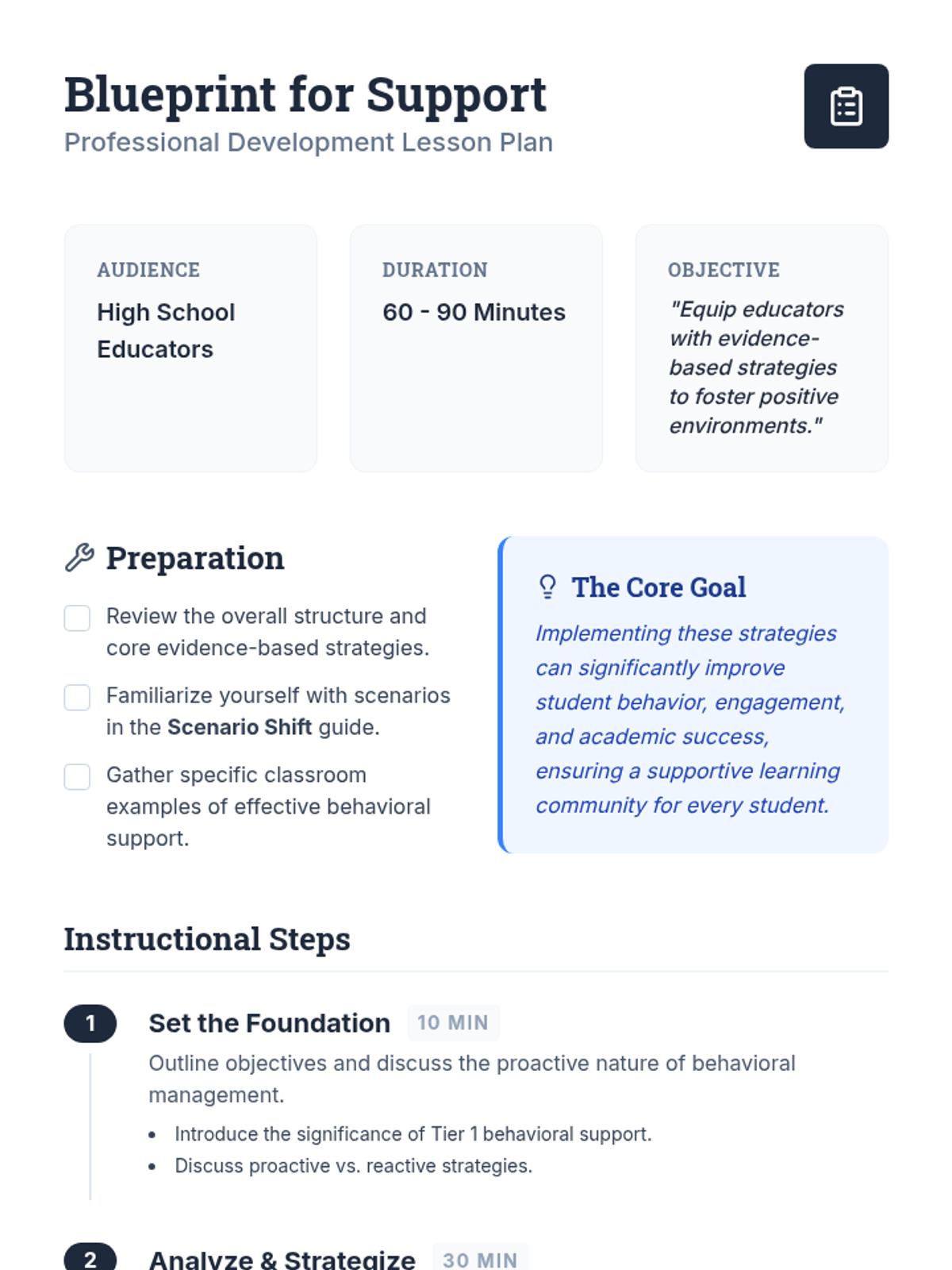A comprehensive K-12 behavior management system that synthesizes best practices from MTSS, PBIS, and restorative justice frameworks. This lesson provides teachers with a clear decision-making flow and a detailed policy handbook for maintaining a positive school culture.