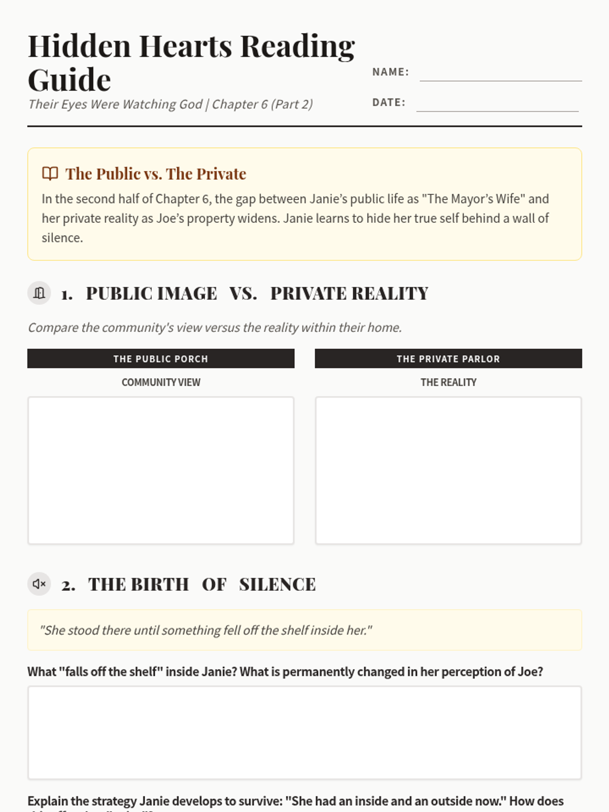 A deep dive into Chapter 6 of Zora Neale Hurston's 'Their Eyes Were Watching God', focusing on Janie's internal landscape, her deteriorating marriage to Joe Starks, and the recurring motif of the pear tree.