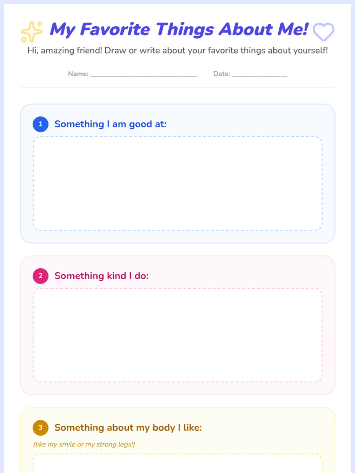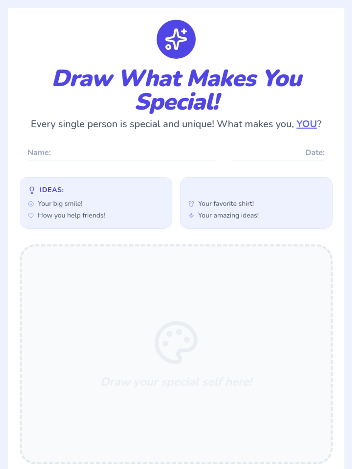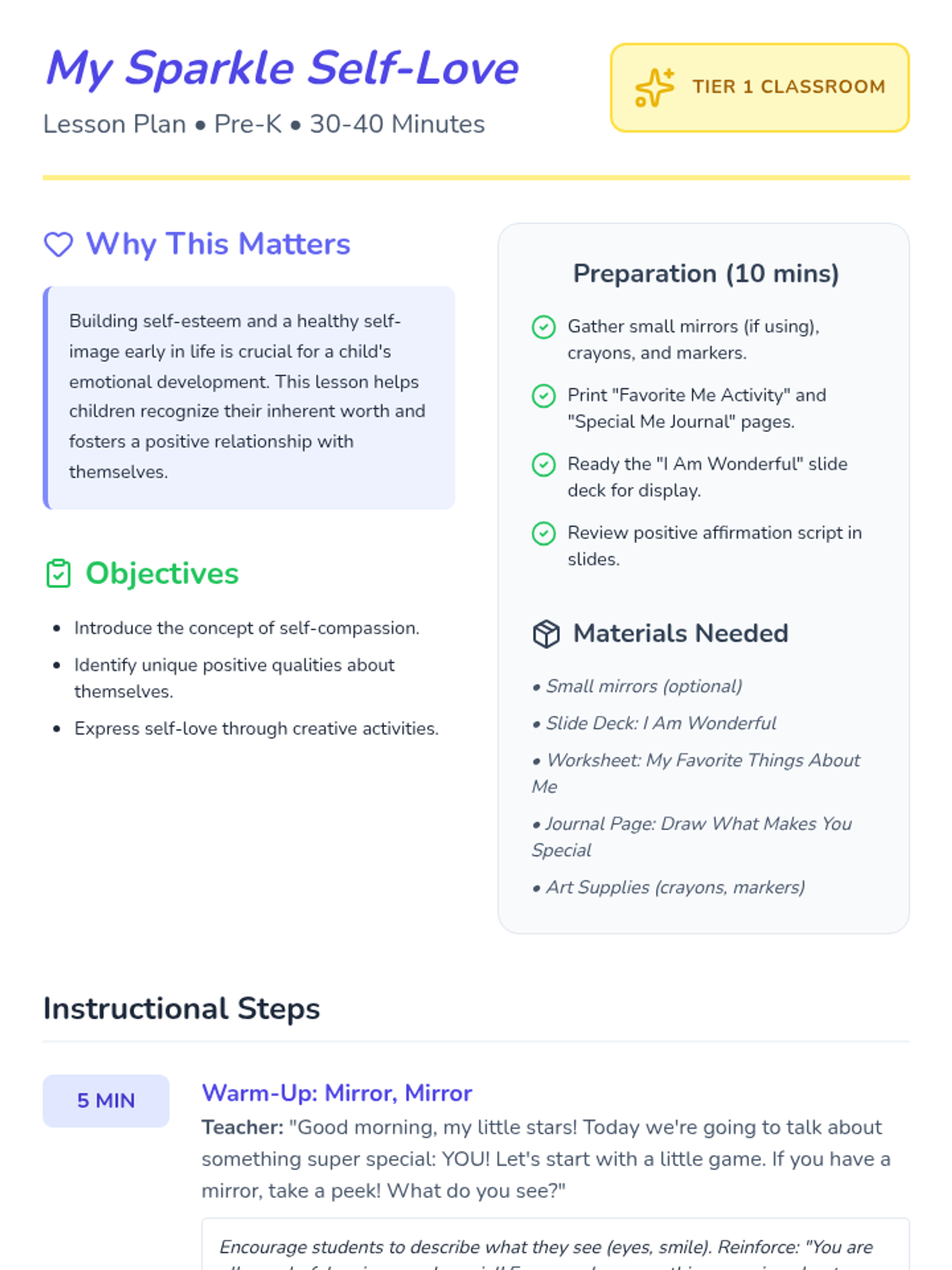 A heartfelt Pre-K lesson focused on self-compassion and identifying unique personal strengths through interactive discussion and creative expression.