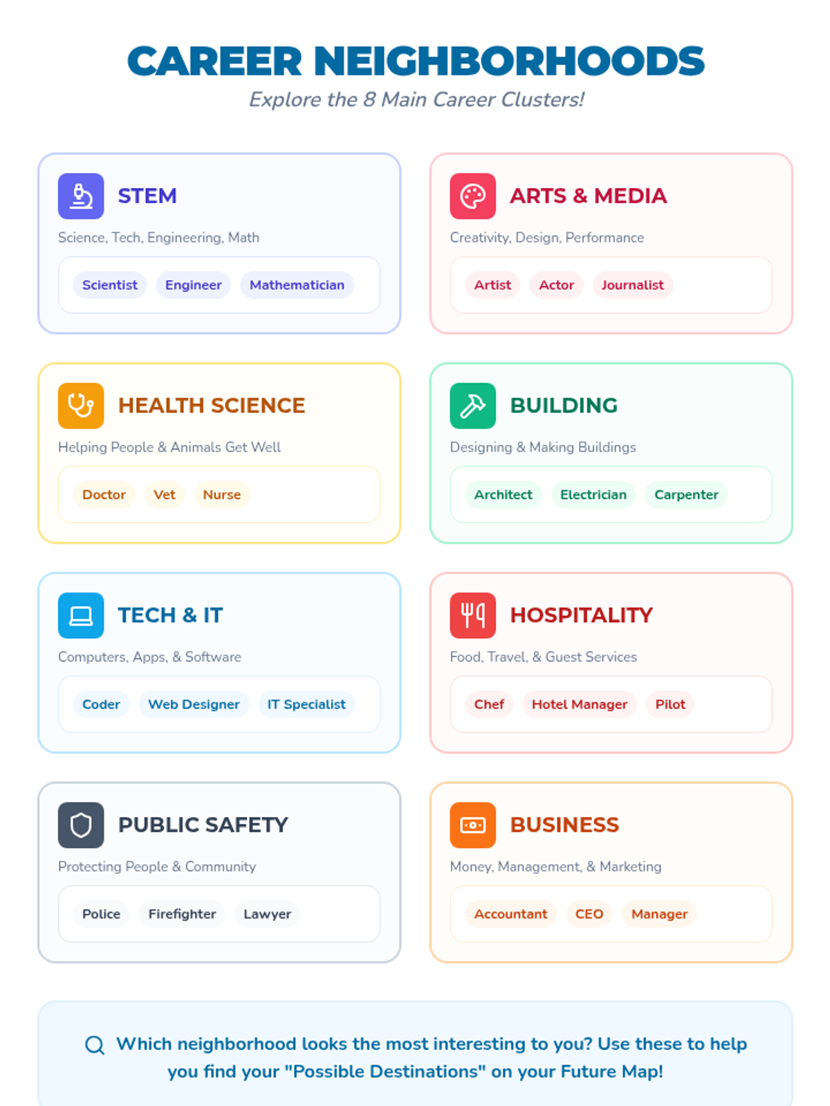 A 45-minute small group session designed for 4th graders to explore their interests and connect them to potential career paths through discussion and brainstorming.