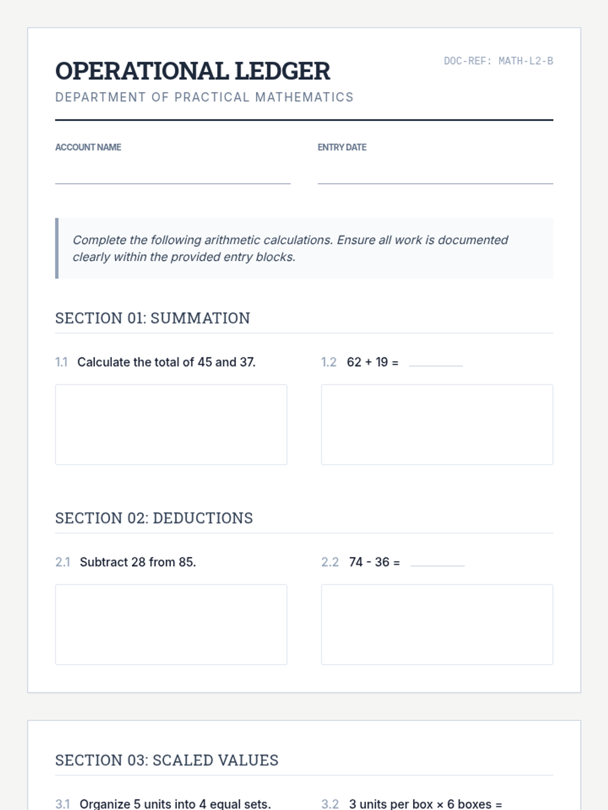 A collection of resources focused on foundational arithmetic operations for older learners, utilizing a professional and mature aesthetic.
