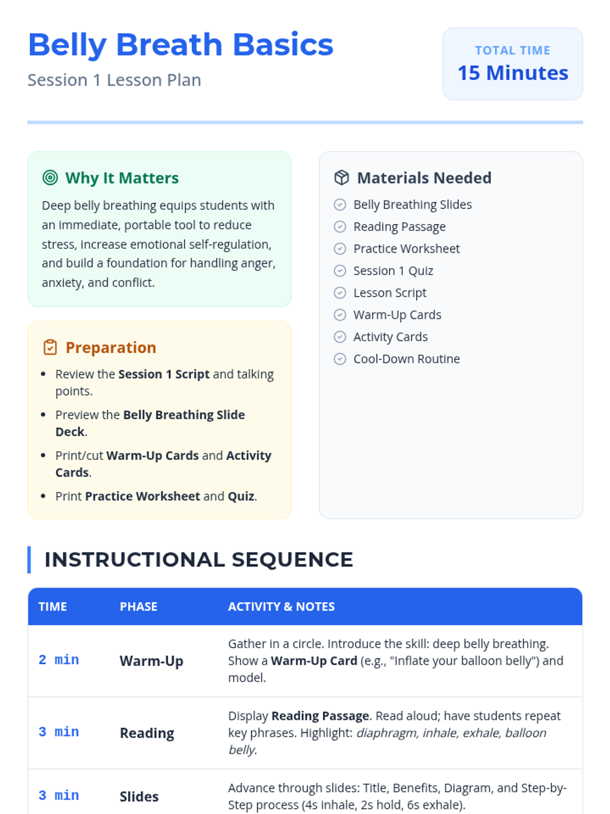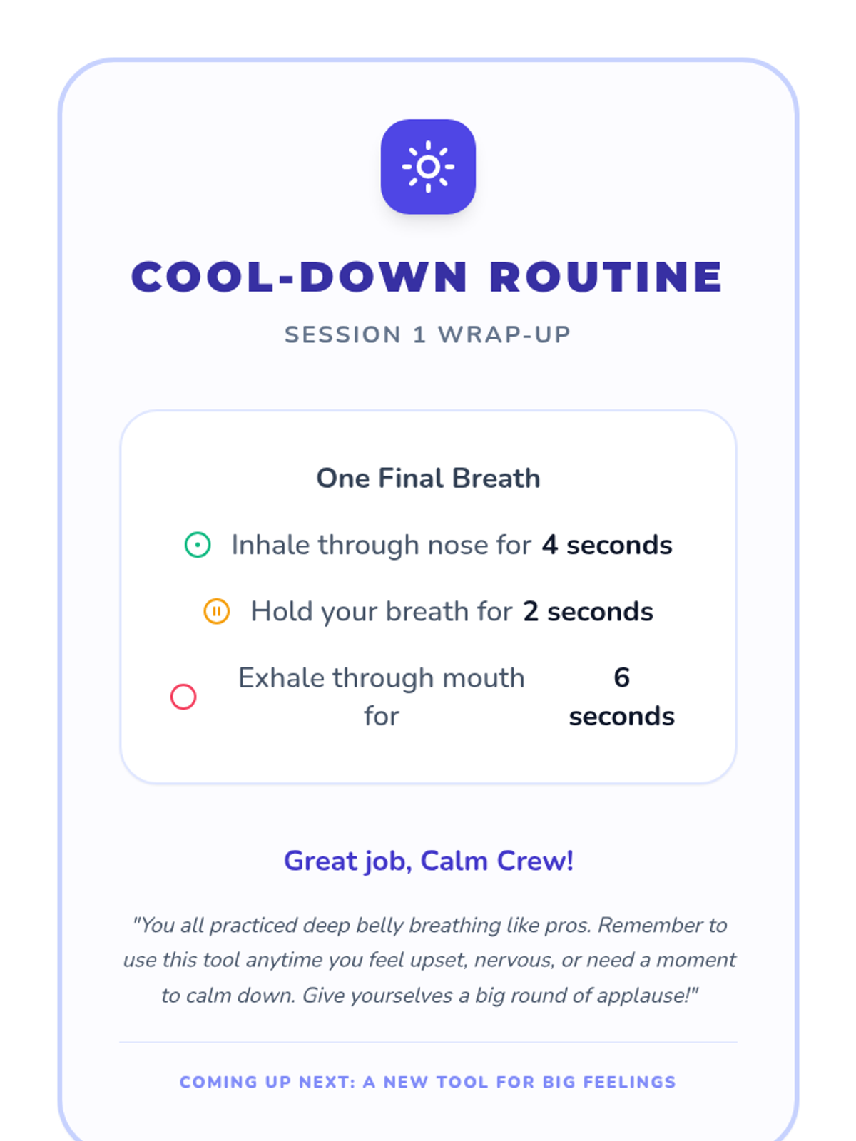 An introduction to deep belly breathing as a tool for emotional regulation, teaching students to visualize their breath and calm their nervous system.