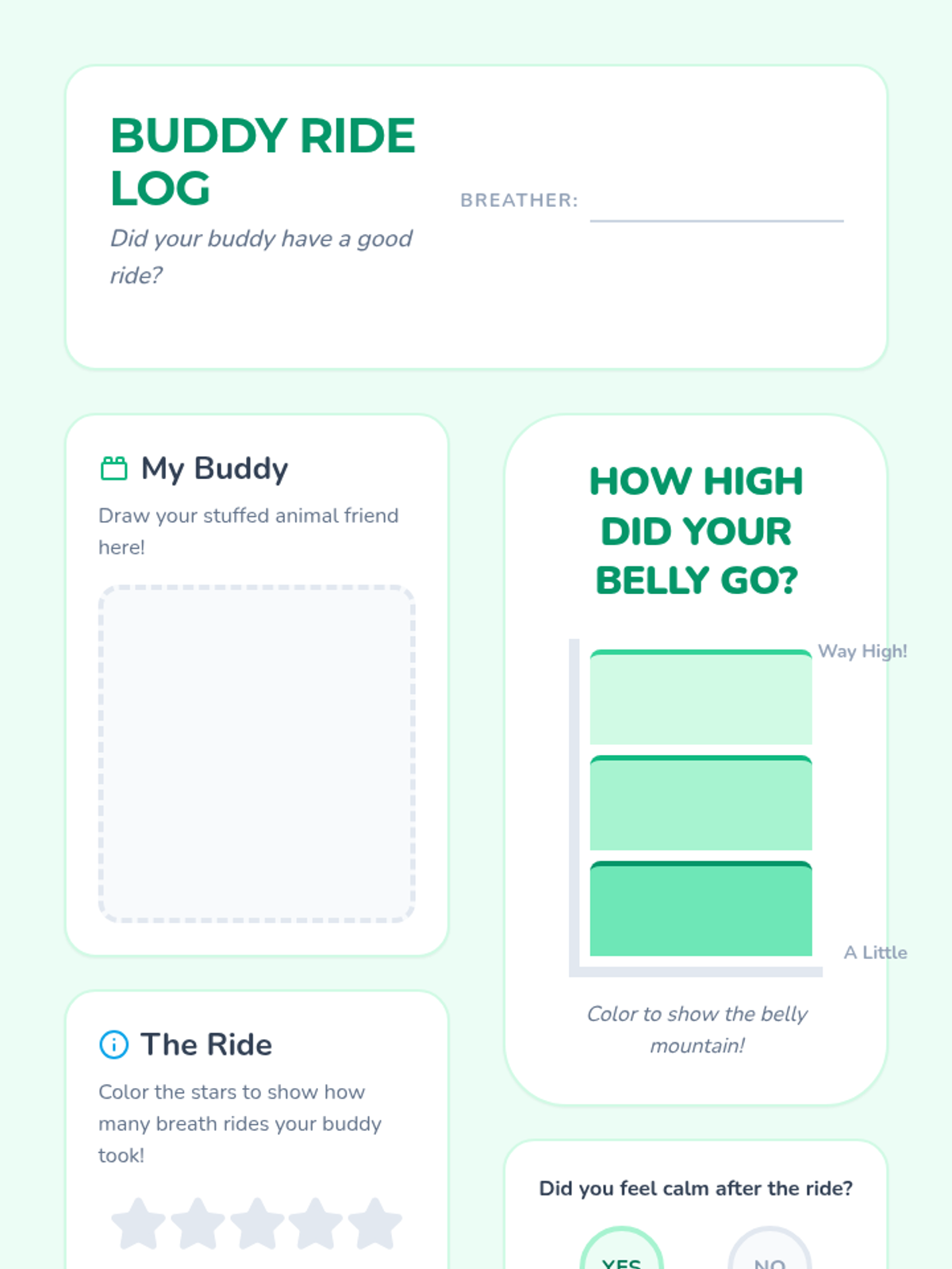 Using props to visualize diaphragmatic breathing, students watch their 'buddies' rise and fall with their breath.