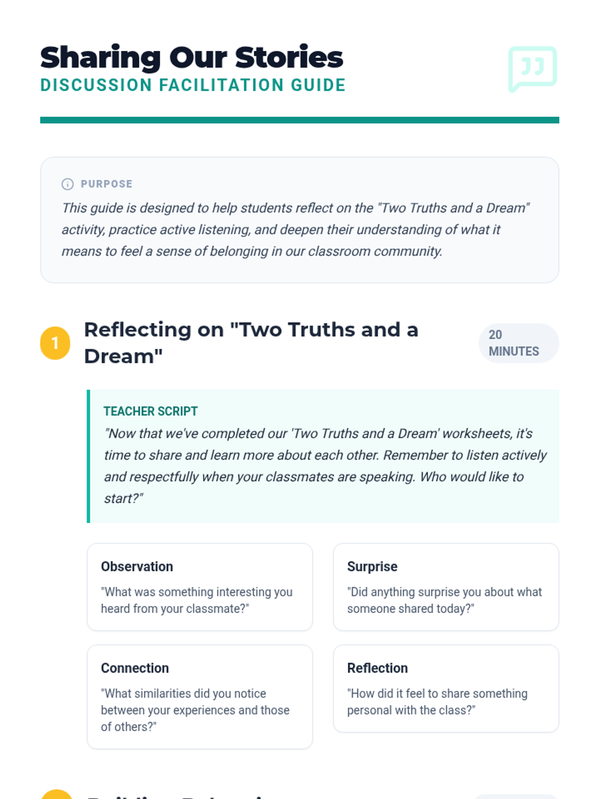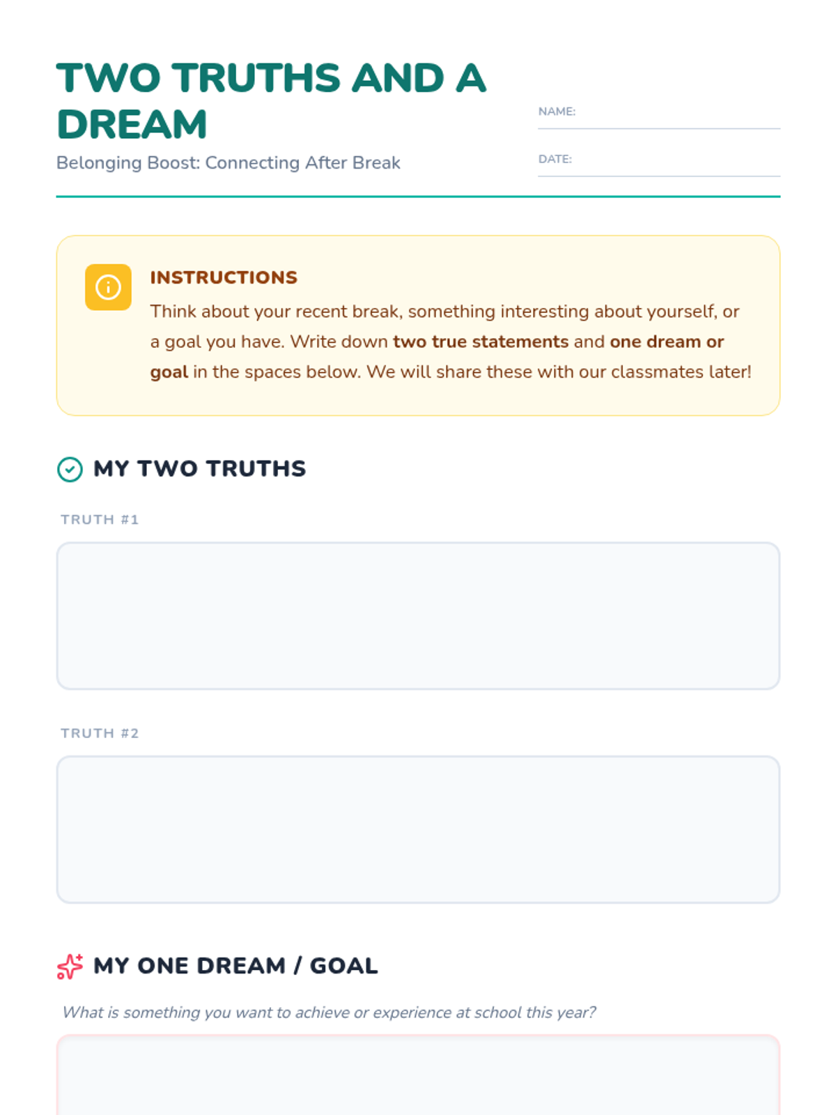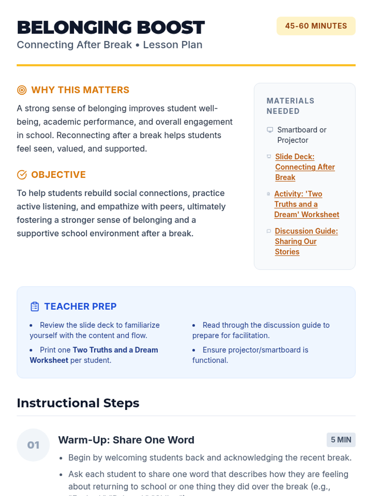 A lesson designed to help students reconnect and rebuild a sense of belonging after a school break through sharing stories and active listening.