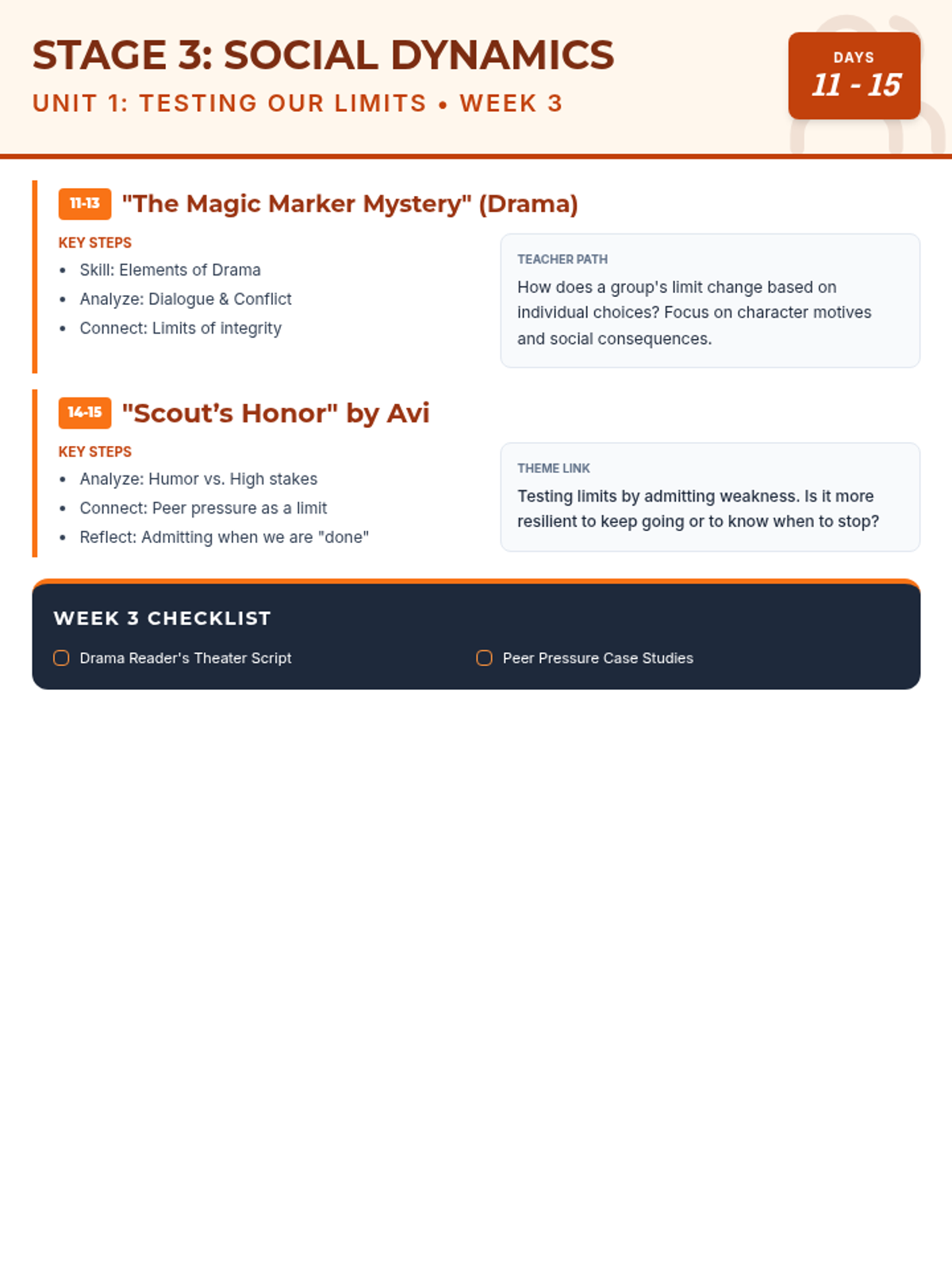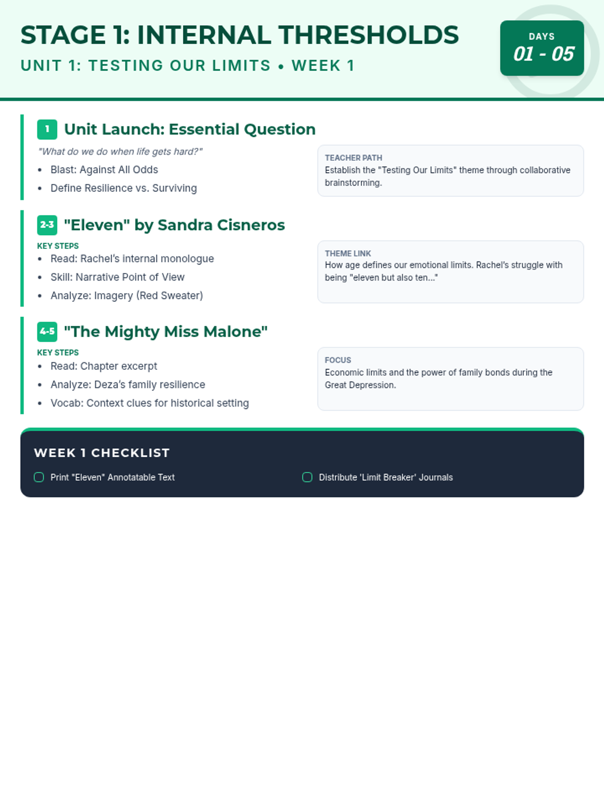 Introductory week focusing on emotional and familial limits through 'Eleven' and 'The Mighty Miss Malone'.