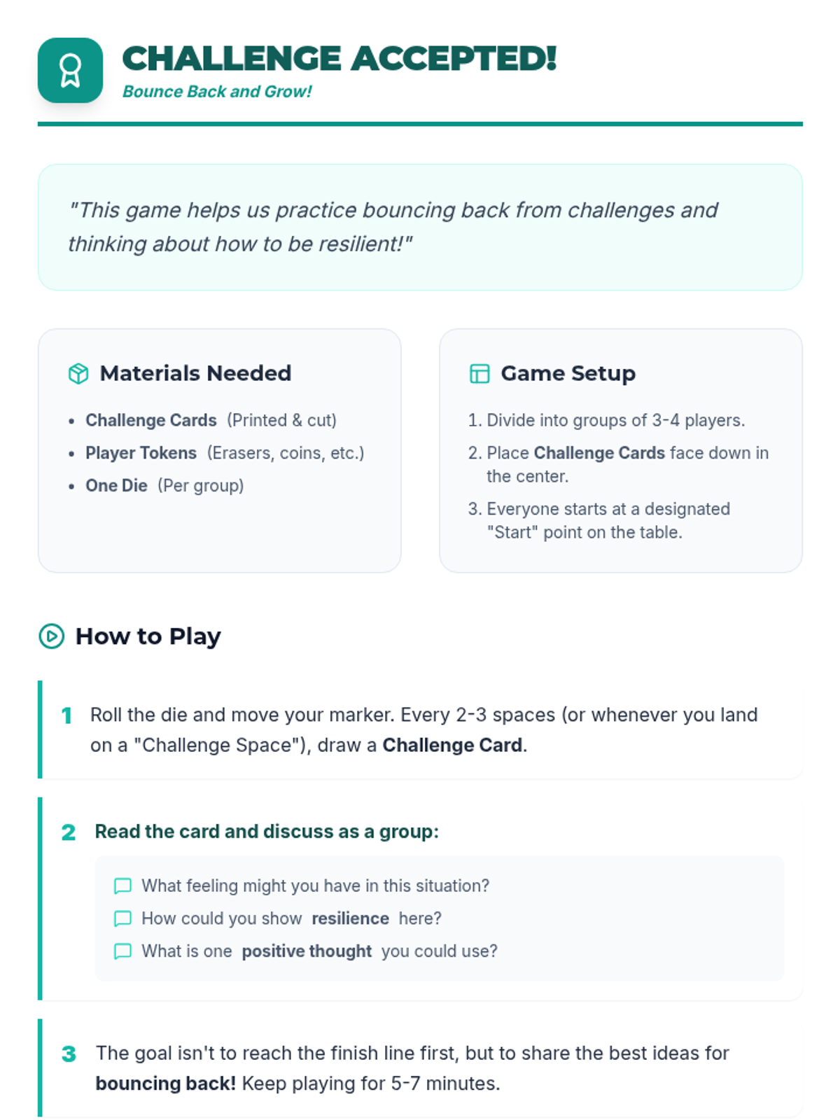 Practical team-based synergy challenges to apply collaborative problem-solving skills.