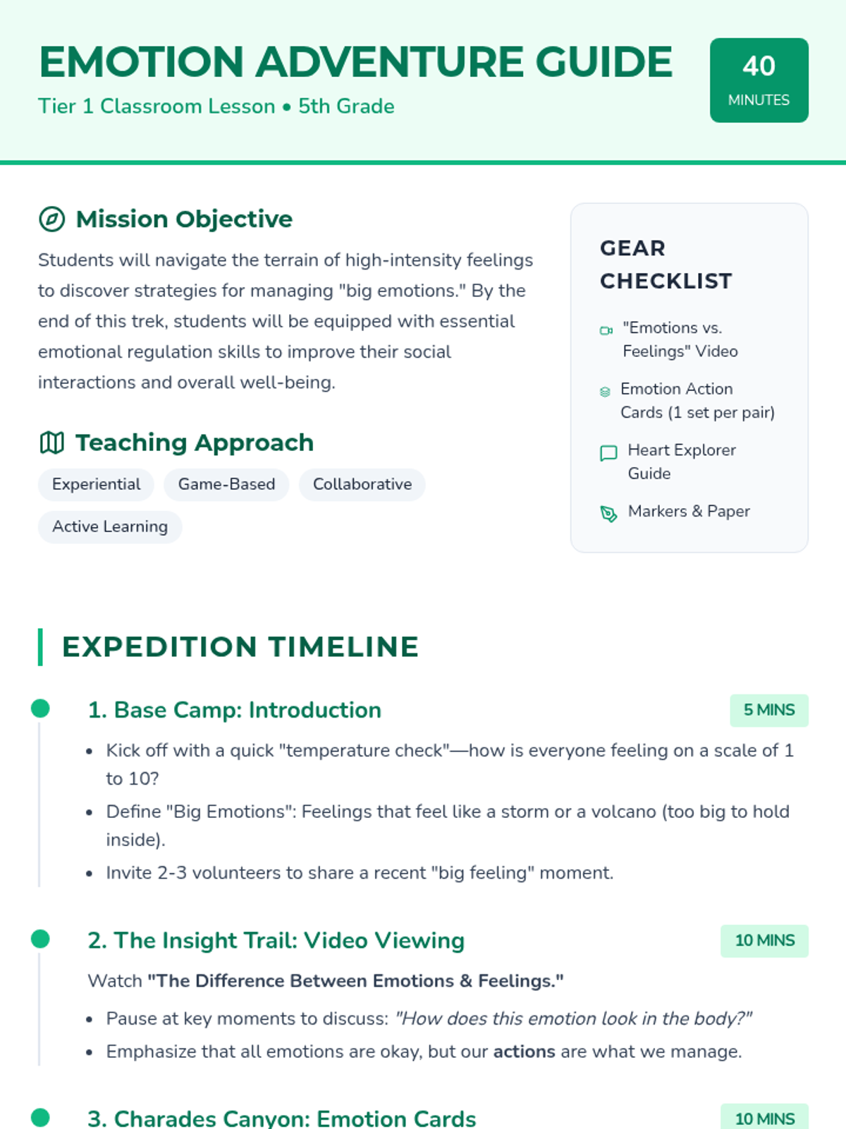 A high-energy, adventure-themed lesson for 5th graders to explore emotional regulation, identifying big feelings, and developing practical coping strategies.
