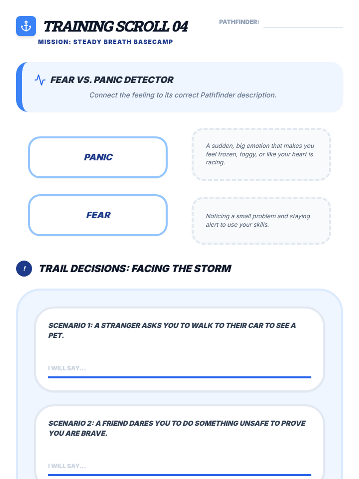 Recognizing physical signs of fear and panic. Grounding strategies for high-stress situations.