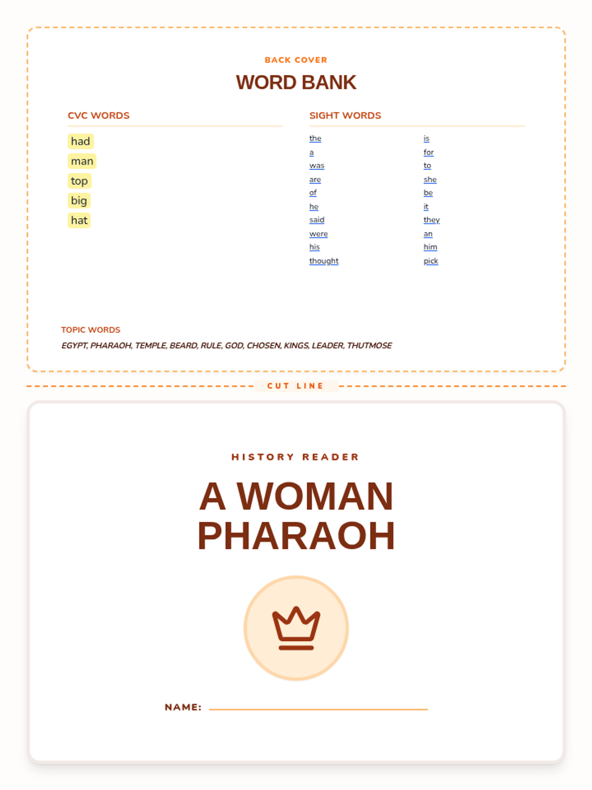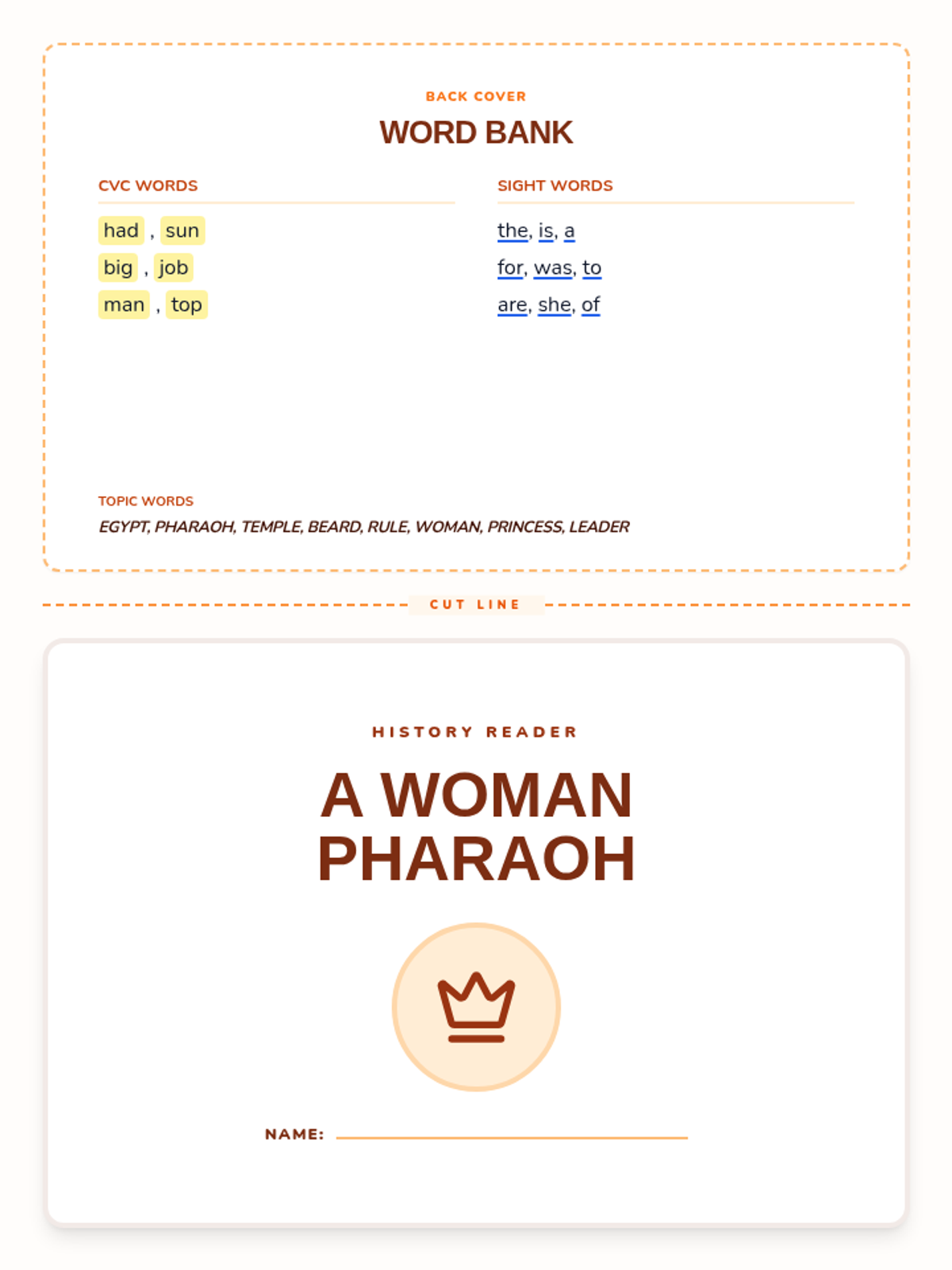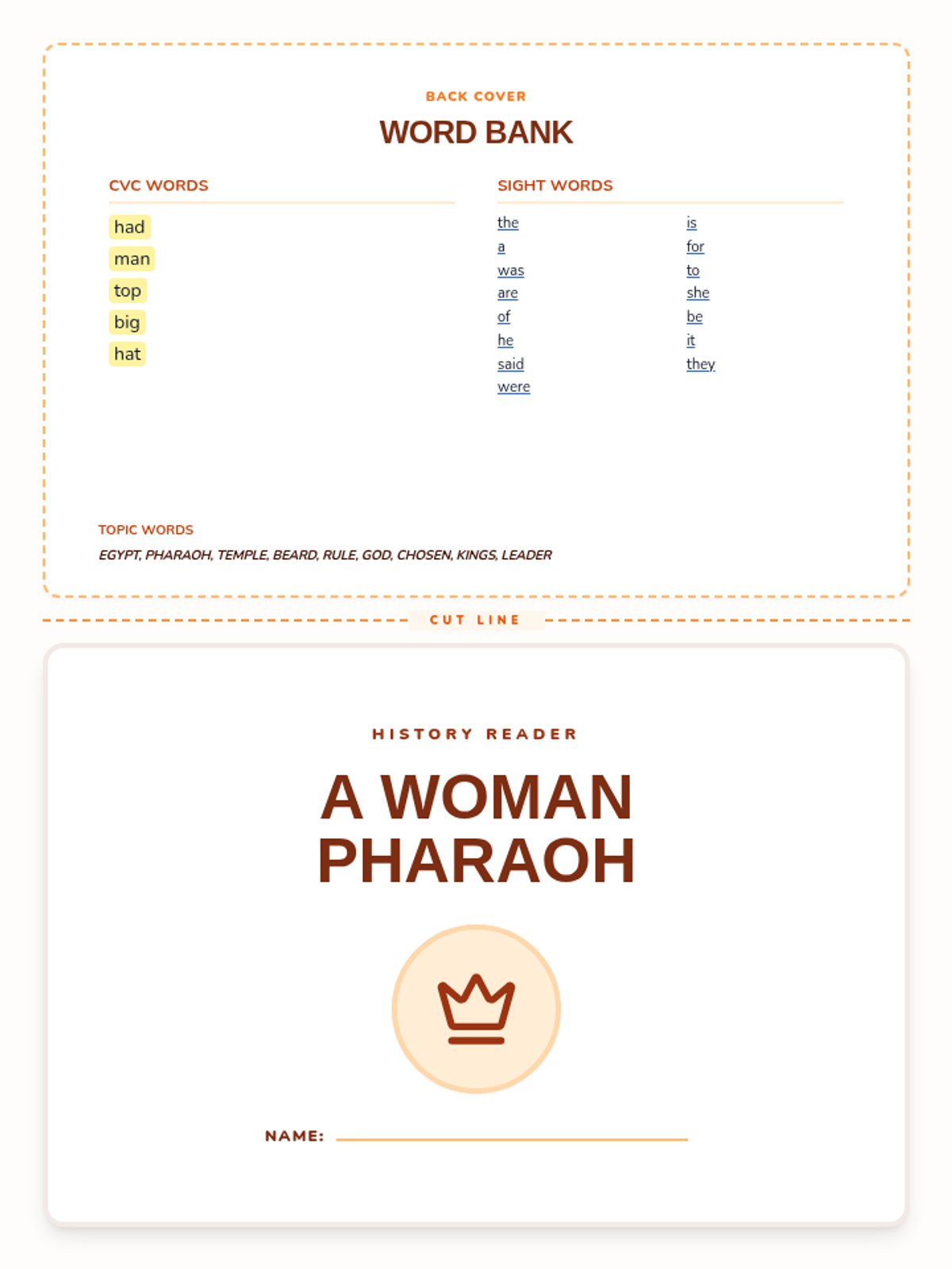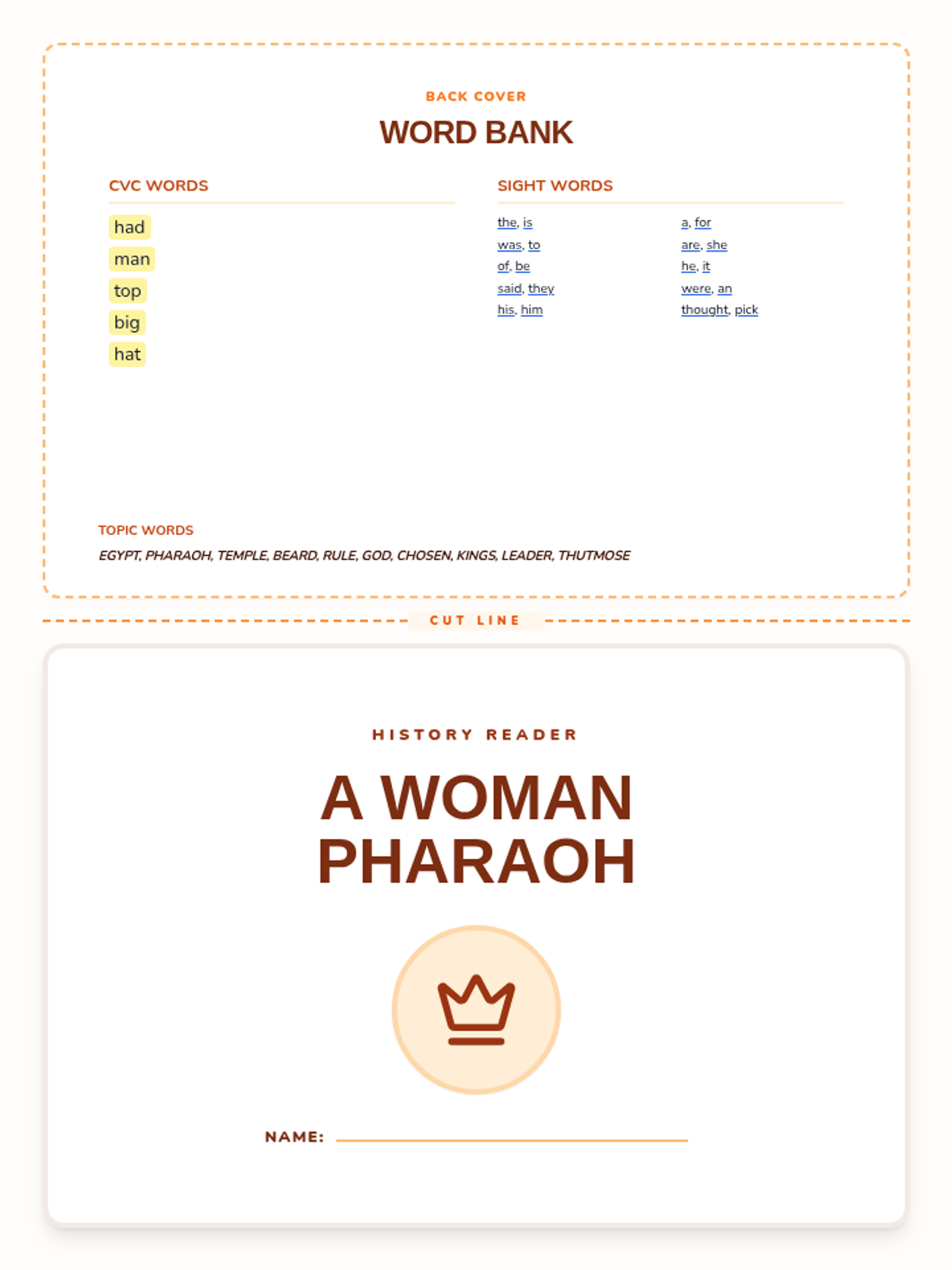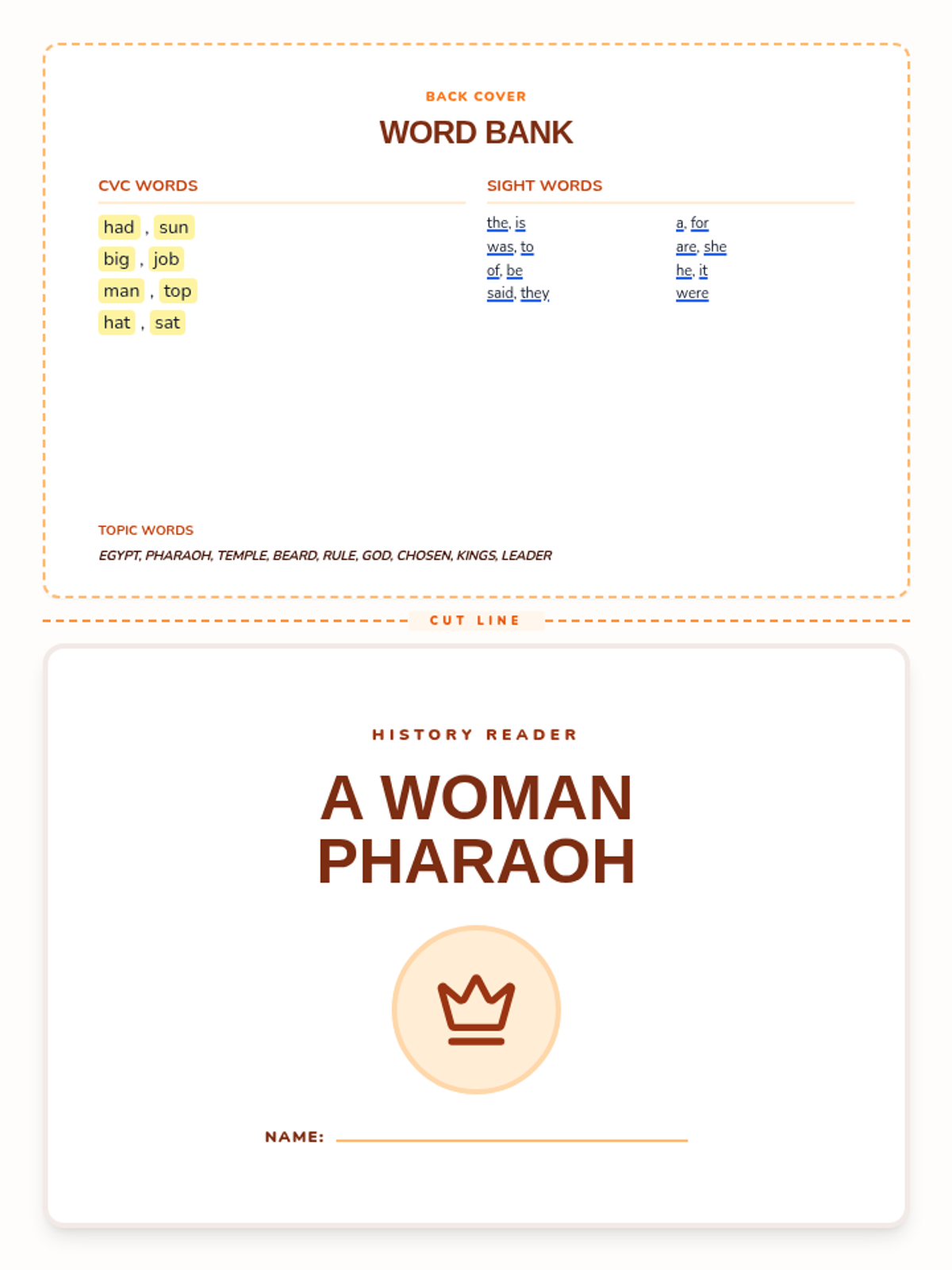 Students will learn about the construction of the pyramids and the significance of the Great Sphinx through a decodable reader and guided discussion.