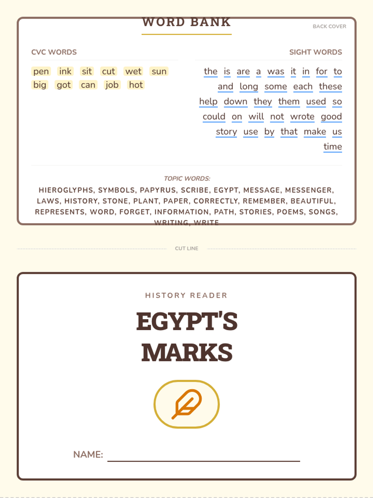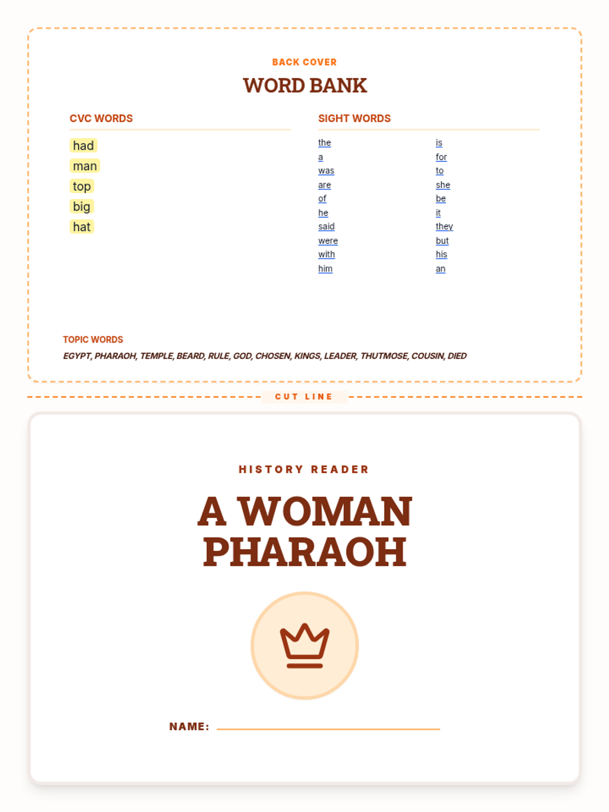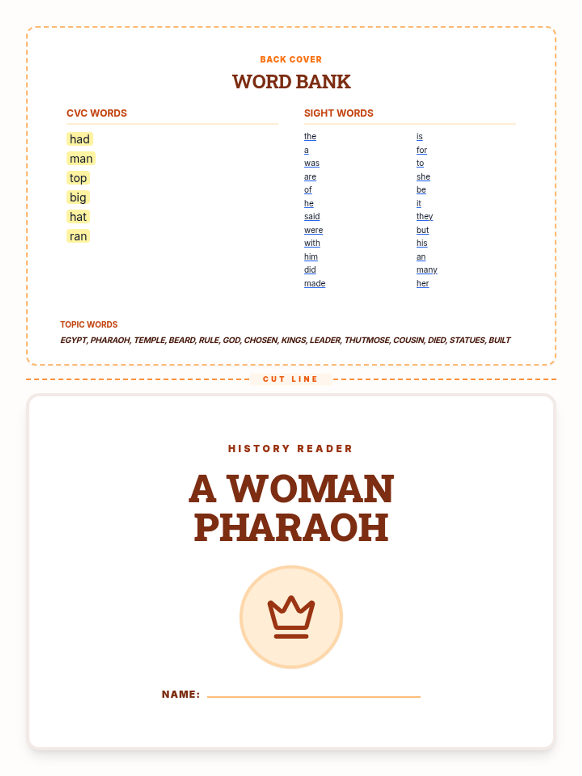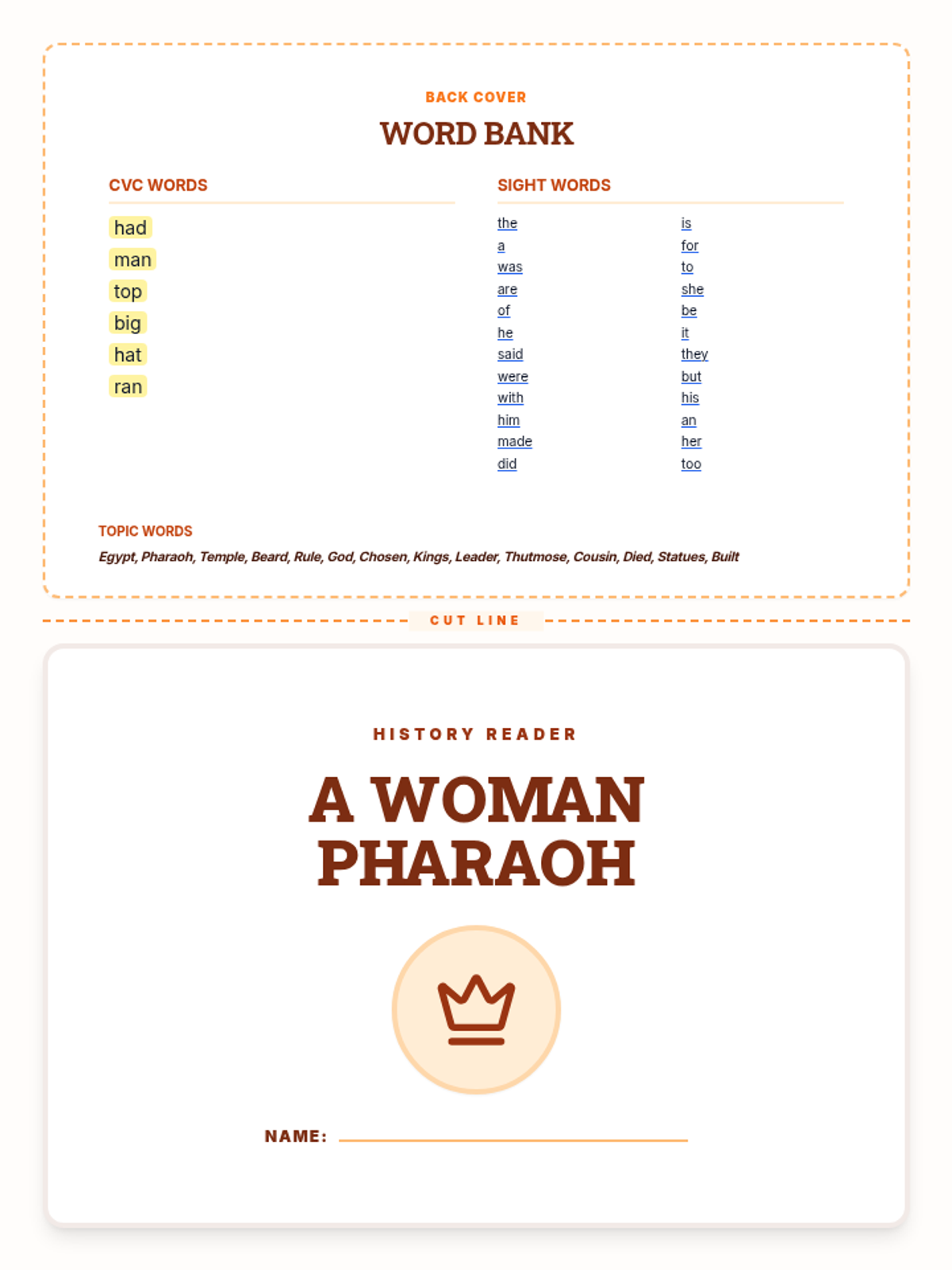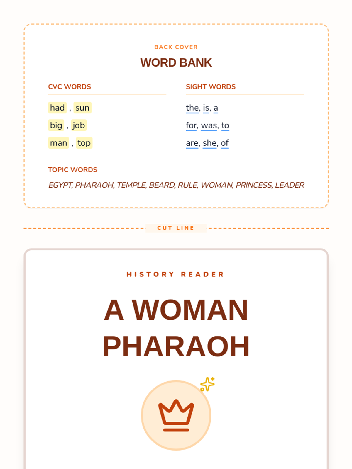 Students will learn about the construction of the pyramids and the significance of the Great Sphinx through a decodable reader and guided discussion.