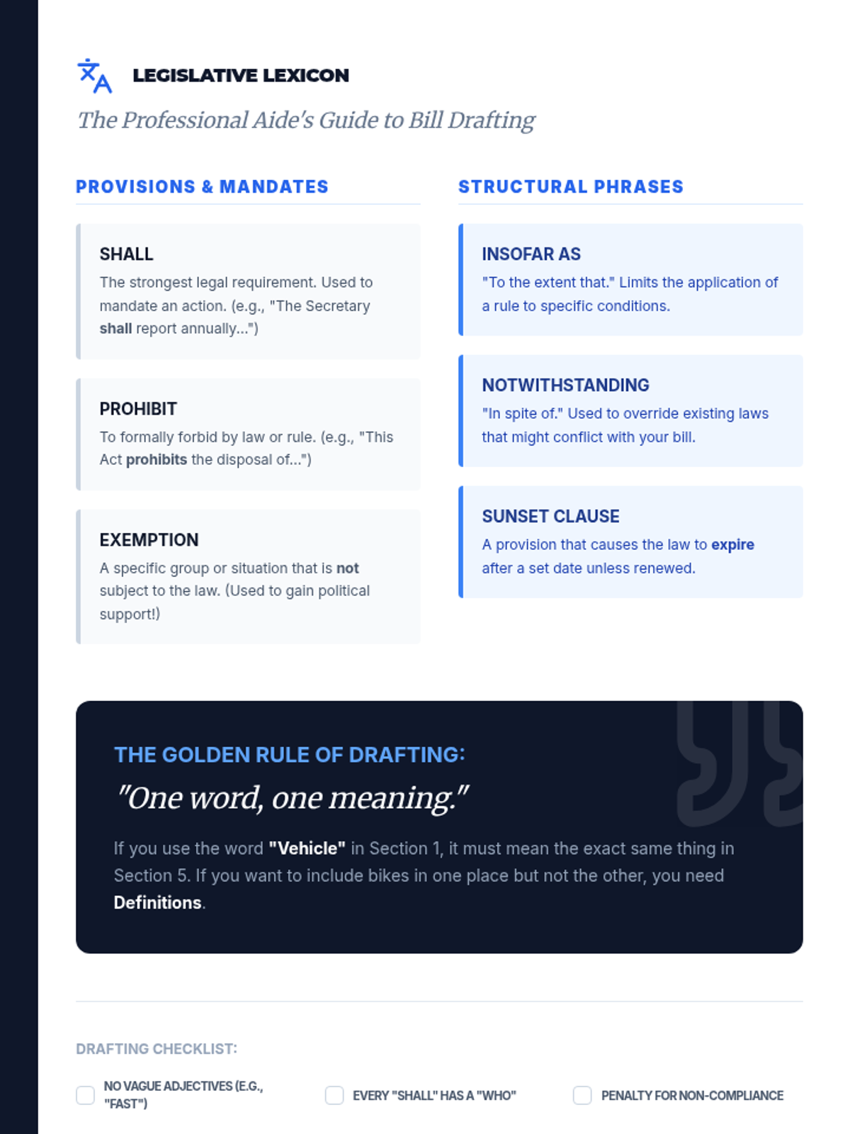 Students master the technical skill of legal writing by drafting clear definitions, enforcement mechanisms, and funding sources for their proposed legislation.